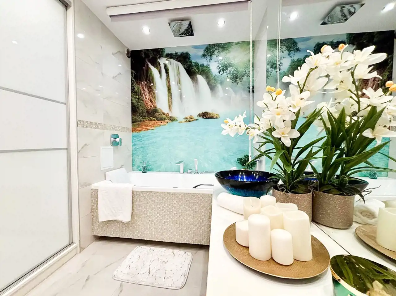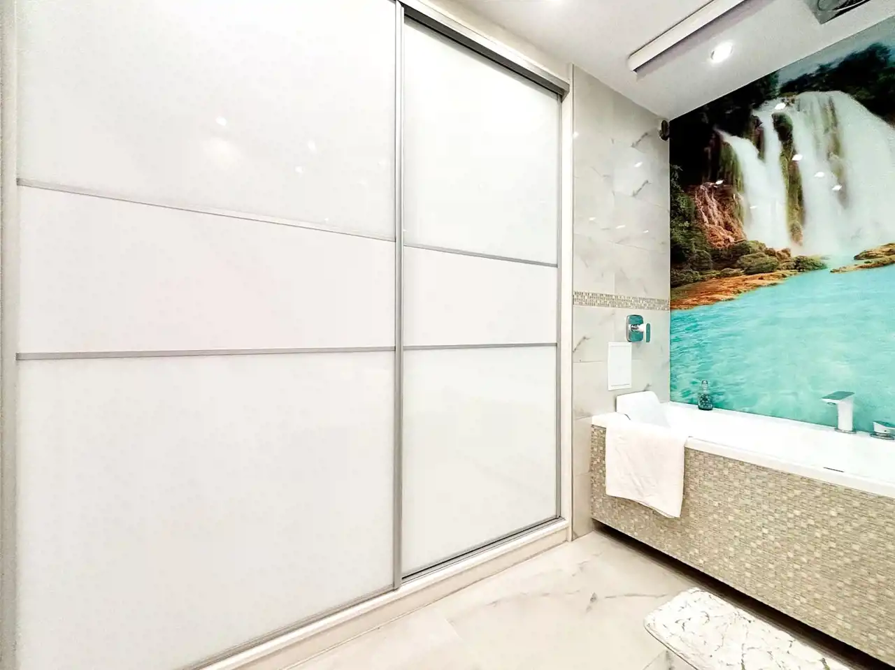• Bardzo duża łazienka – nowoczesna, z praktyczną szafą w zabudowie, która zapewnia dodatkowe miejsce na przechowywanie.