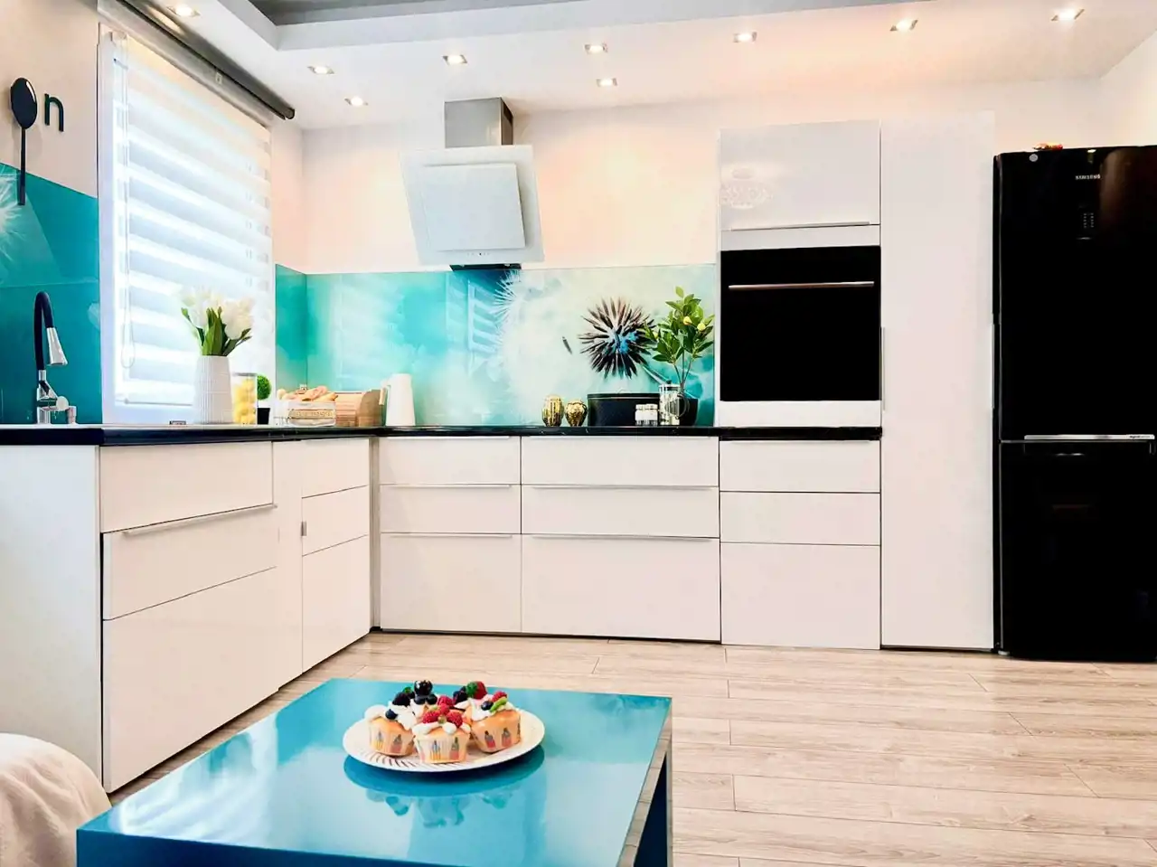 • Duża kuchnia z jadalnią – w pełni wyposażona, z wygodną przestrzenią do gotowania i spożywania posiłków.