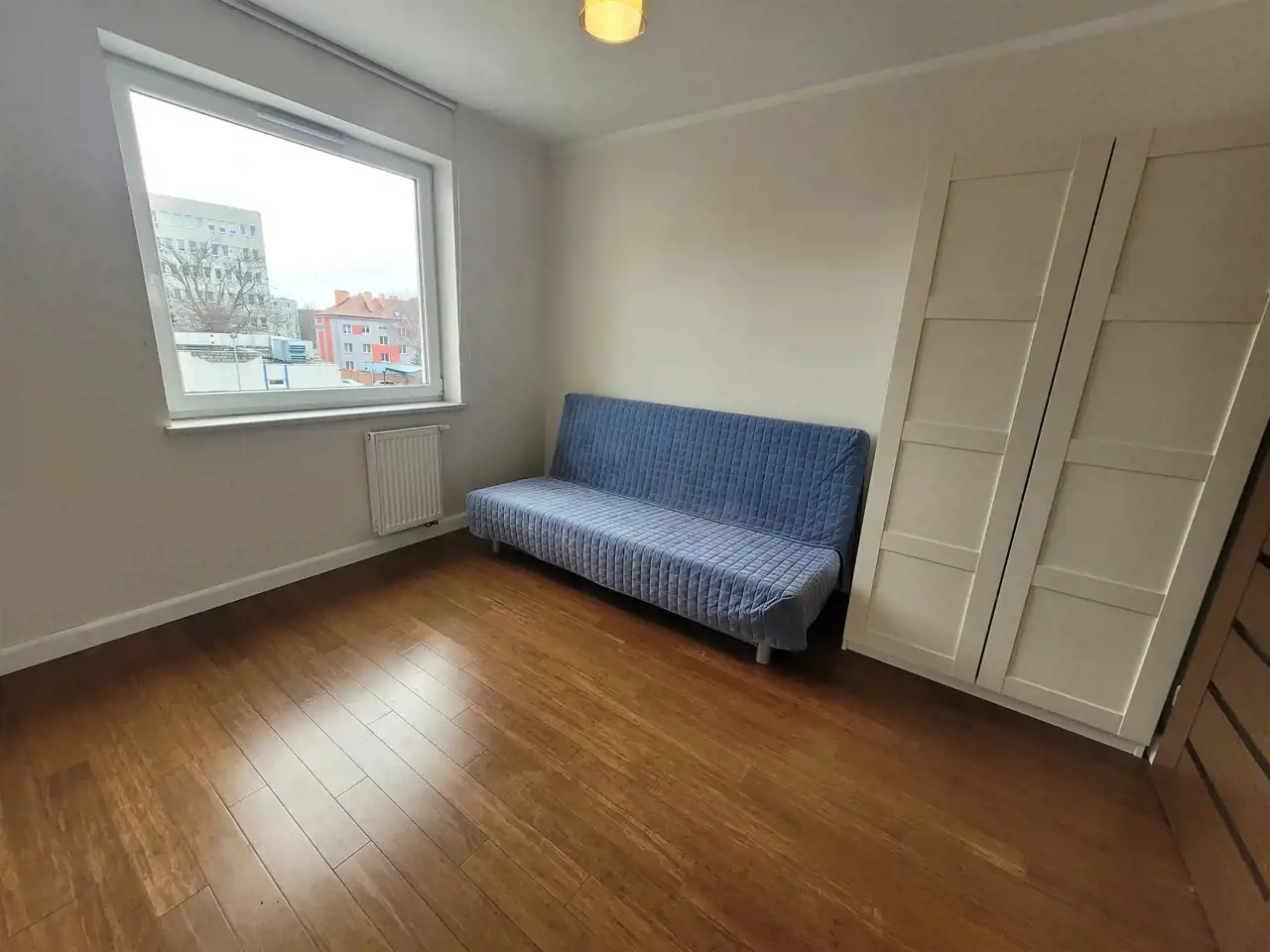 W większej sypialni i przedpokoju przestronne szafy. Całe mieszkanie zachowane w nowoczesnym stylu.