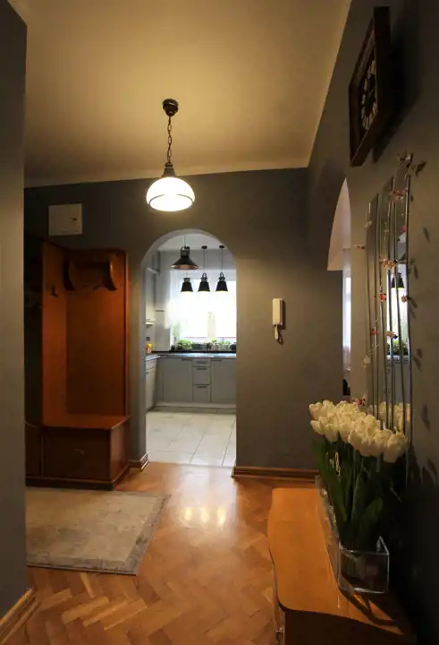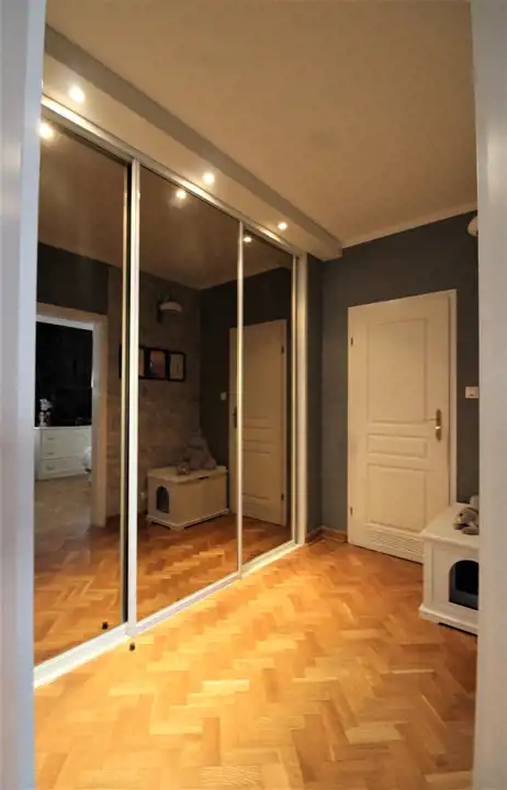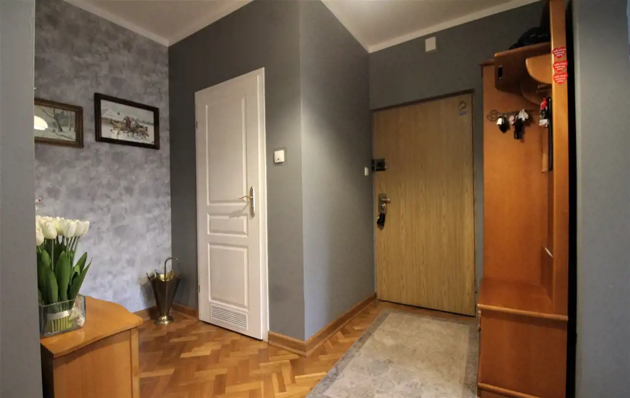 - dwóch przedpokoi, w tym jednego z pojemną szafą z lustrami, drugiego z wieszakami i zestawem mebli,