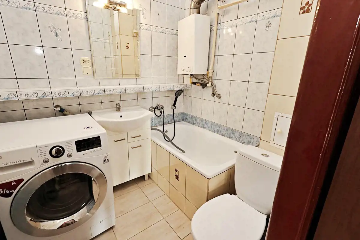 - Media Ogrzewanie: C.O. miejskie; Woda: ciepła - piecyk gazowy