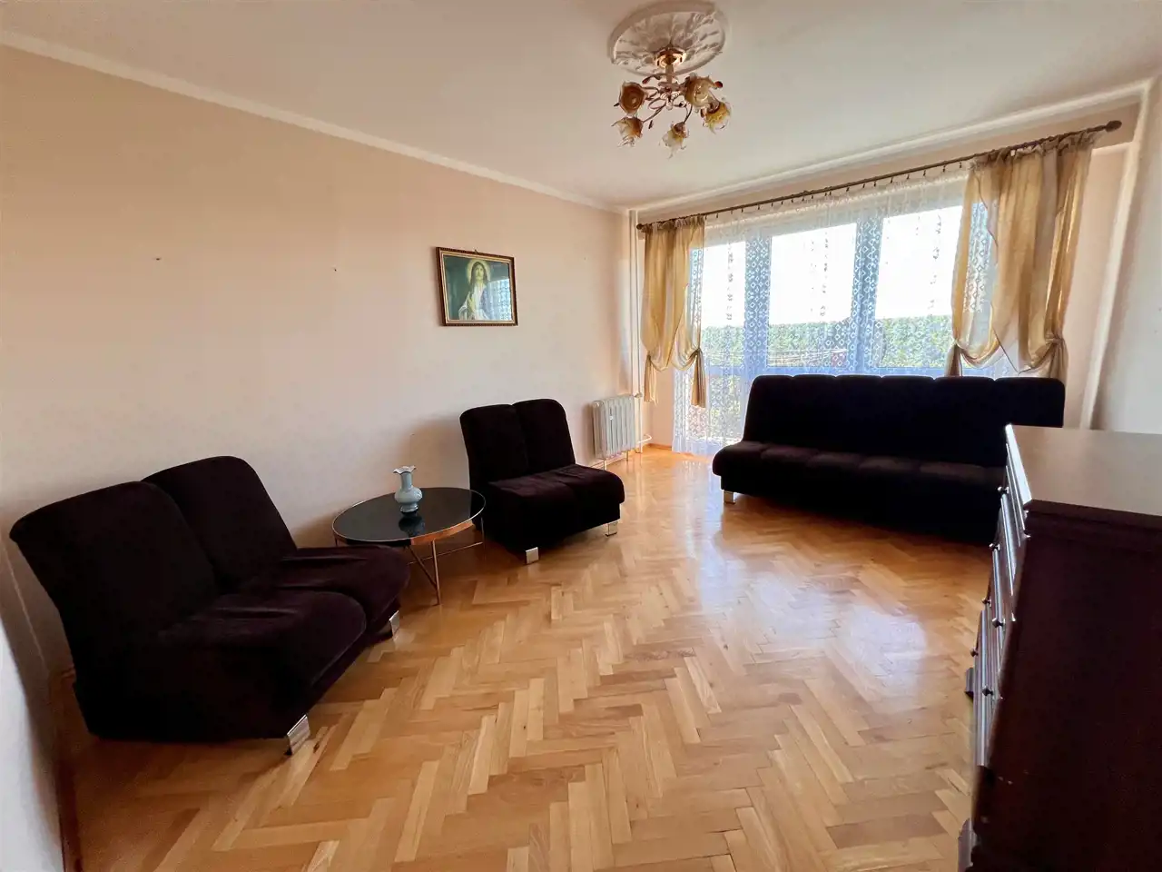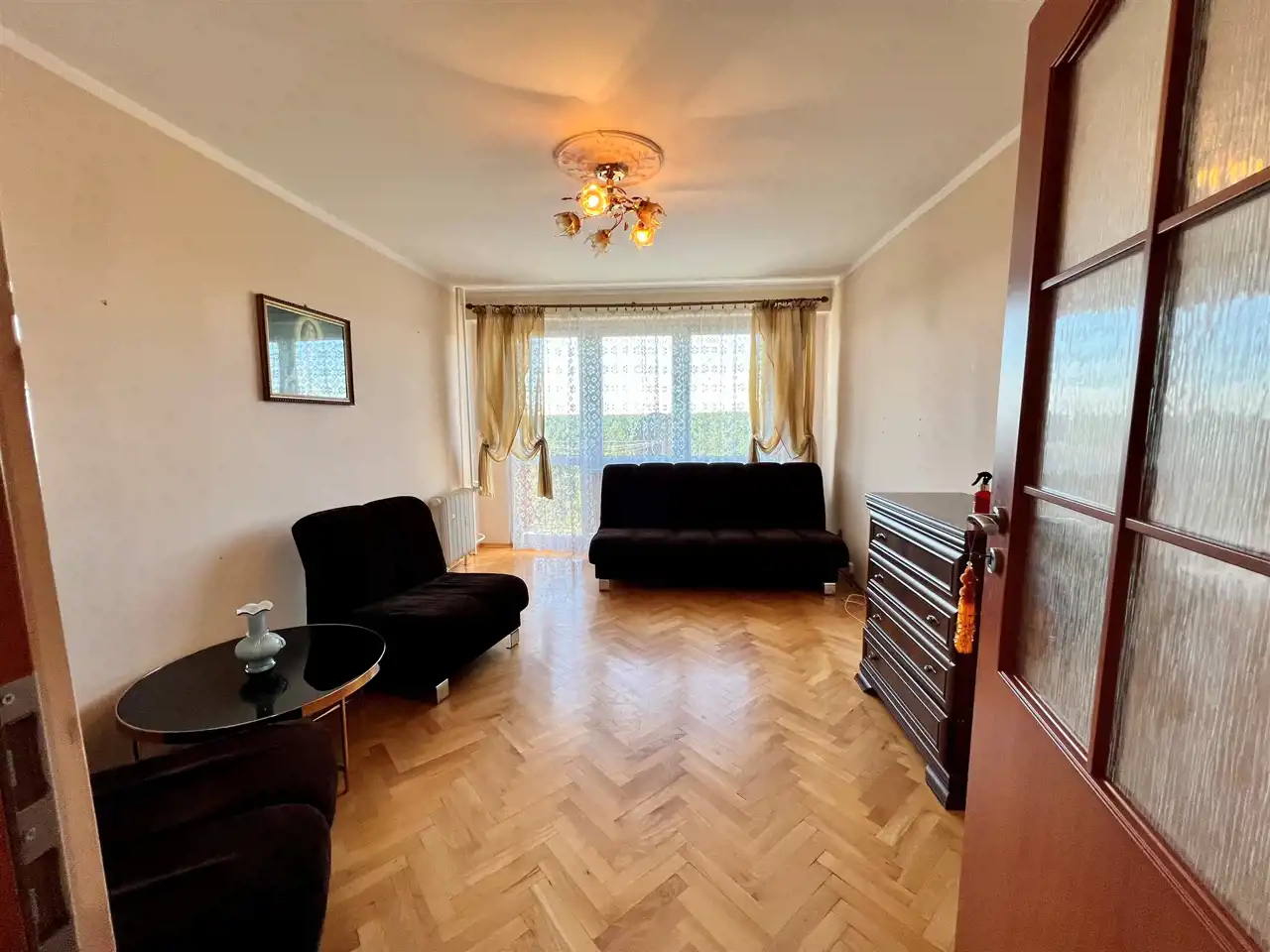 salon z wyjściem na balkon,