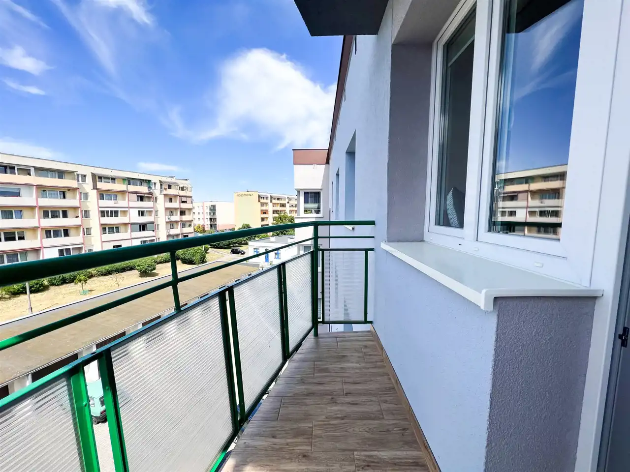 - Z okien rozpościera się widok na piękne i zadbane osiedle.