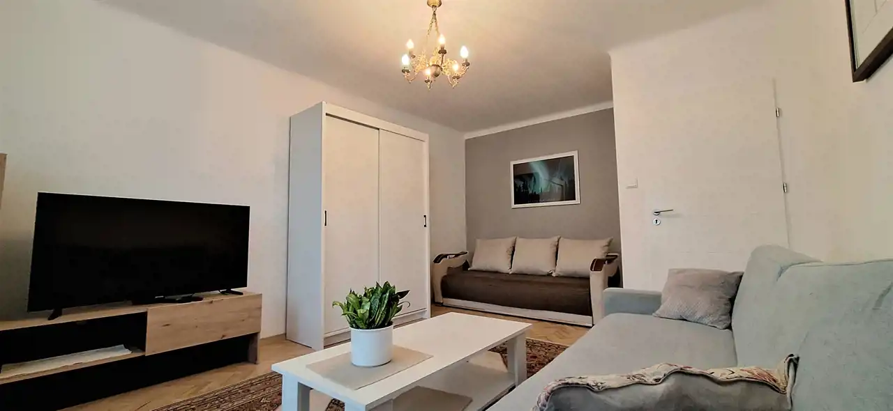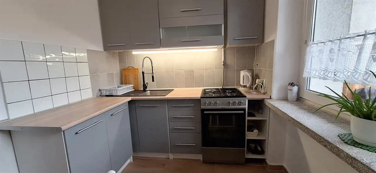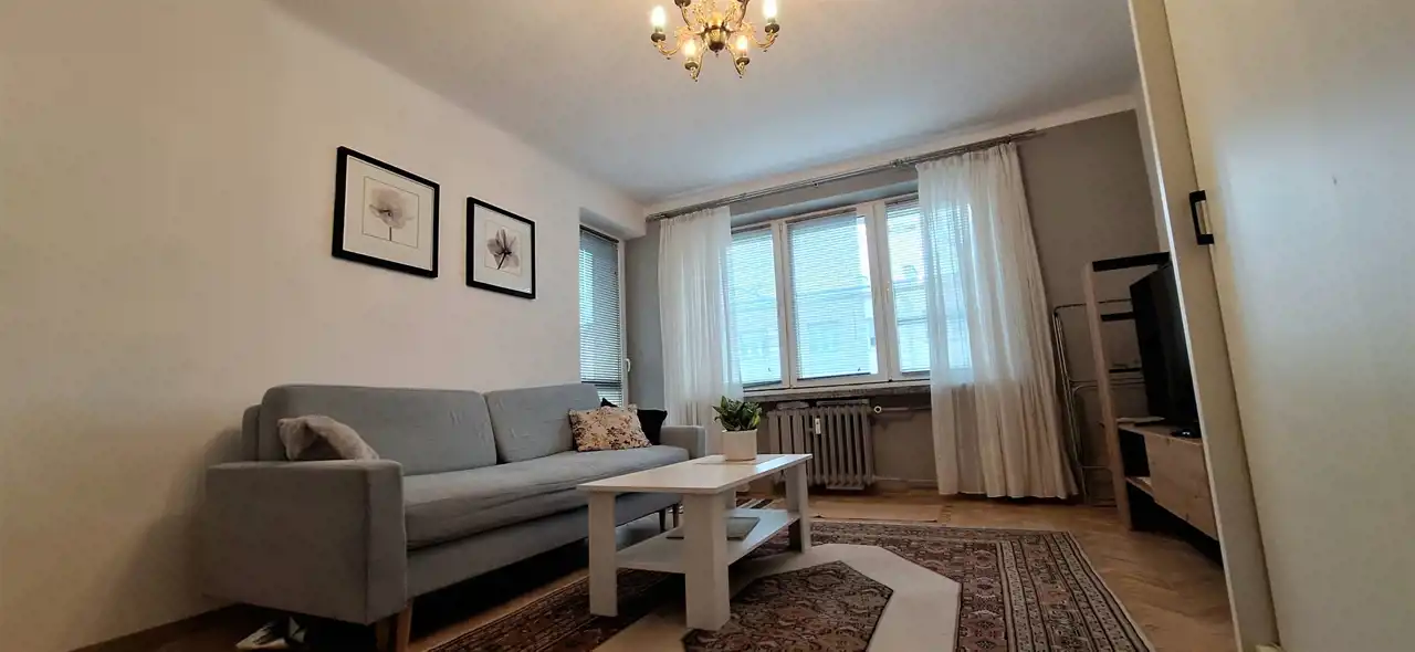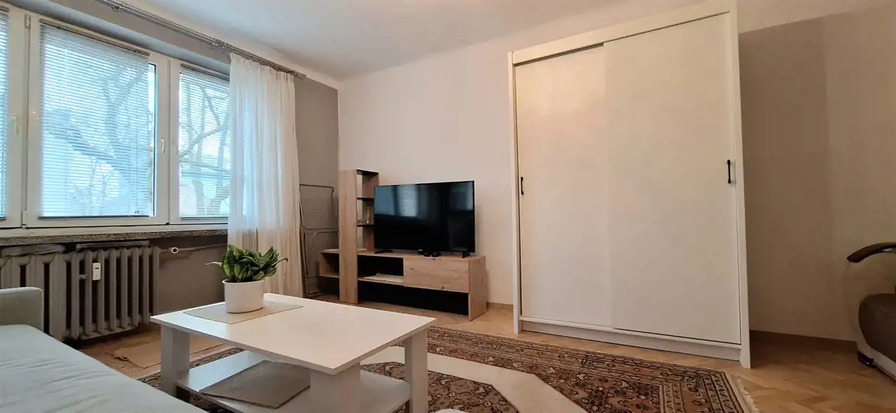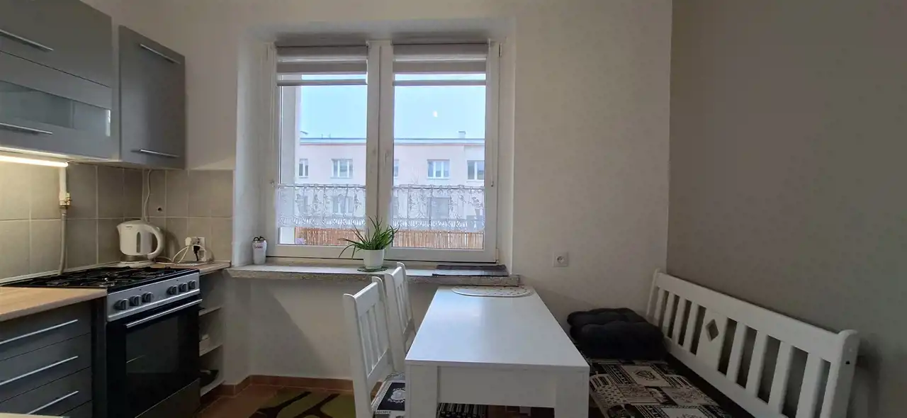 Mieszkanie w pełni umeblowane, wyposażone w sprzęt AGD, gotowe do wprowadzenia. Składa się z przestronnego pokoju z wyjściem na duży balkon, kuchni z oknem oraz łazienki z WC. Wnętrza wykończone z dbałością o szczegóły, na podłodze parkiet, co dodaje ciepła i elegancji.