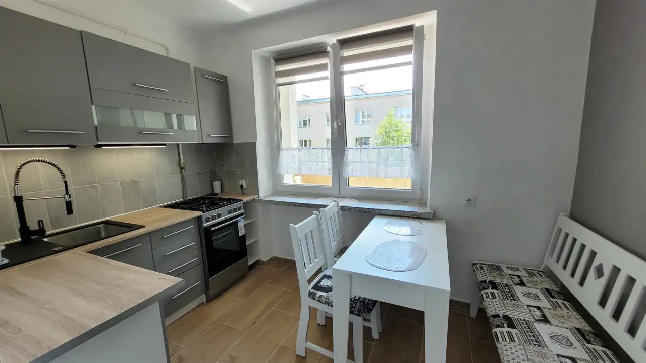 Osiedle dobrze skomunikowane z resztą miasta. Niskie piętro. Lokal jest przestronny, urządzony w nowoczesnym stylu. Będą Państwo mieć do dyspozycji duży balkon. Kuchnia jest wyposażona w nowy sprzęt AGD. W łazience nowa pralka, przy wejściu do mieszkania szafa w zabudowie. Niski czynsz. Blisko sklepów i parku ze ścieżkami do spacerów, blisko do przystanków MPK. Licznik na prąd przedpłatowy.