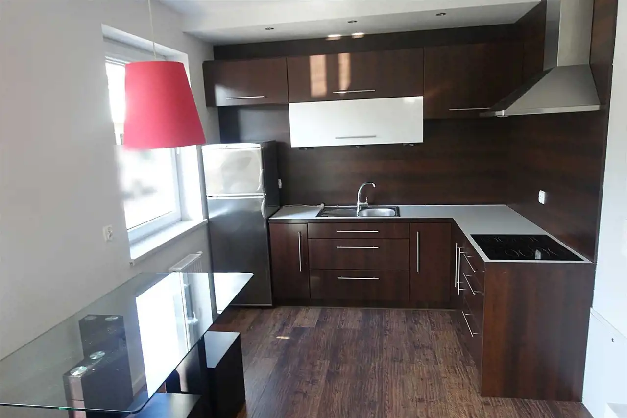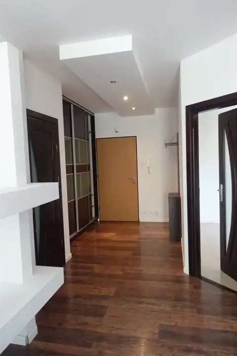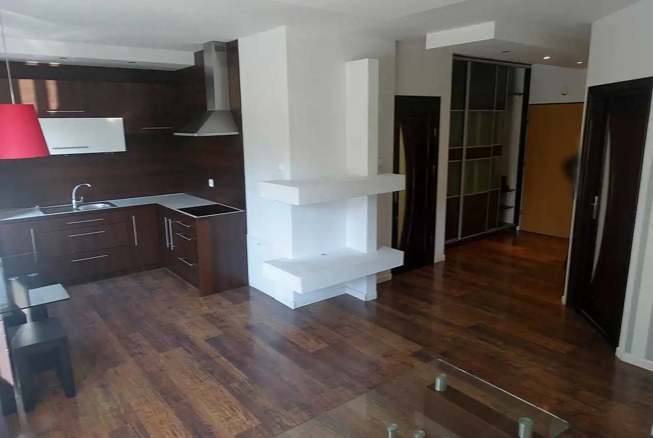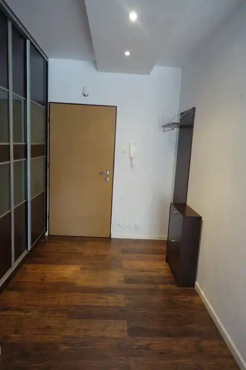 W mieszkaniu znajduje się kompletna zabudowa kuchni wraz ze sprzętem AGD (płyta grzewcza, okap, lodówka), stół, taborety, ława oraz duża szafa w zabudowie w przedpokoju i szafka na byty z wieszakiem, w pokojach kanapa, łóżko.