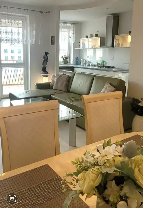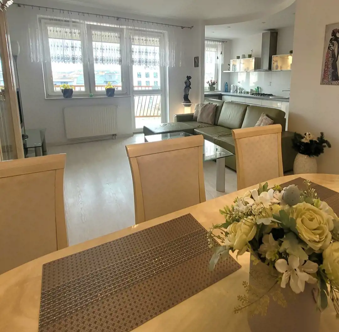 - salon z aneksem kuchennym i wyjściem na duży balkon,