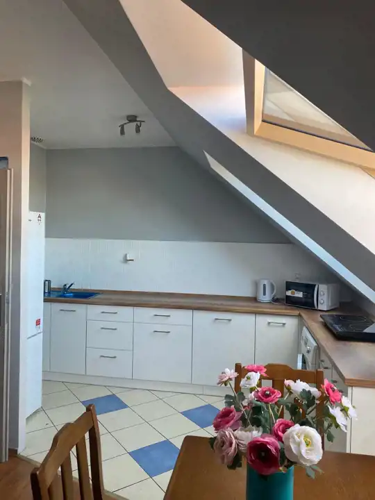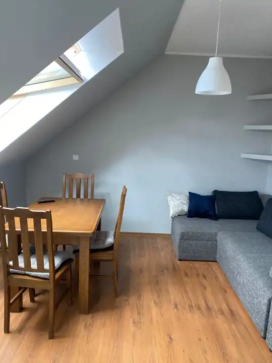 - przestronny salon z aneksem kuchennym,