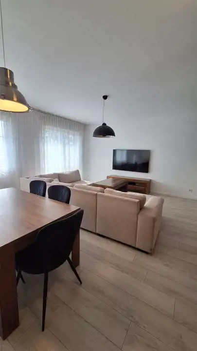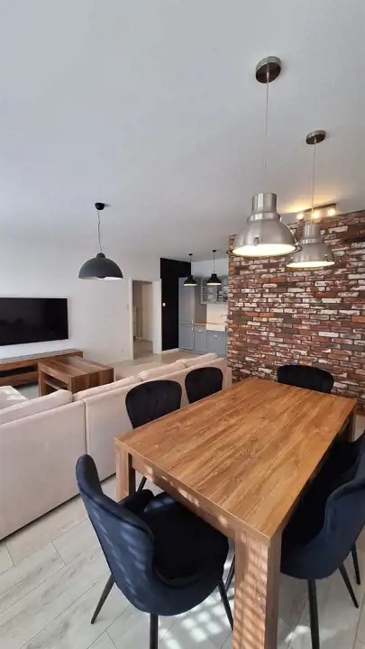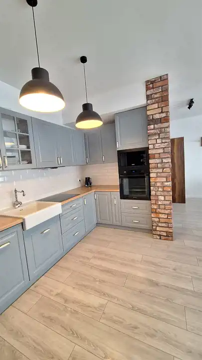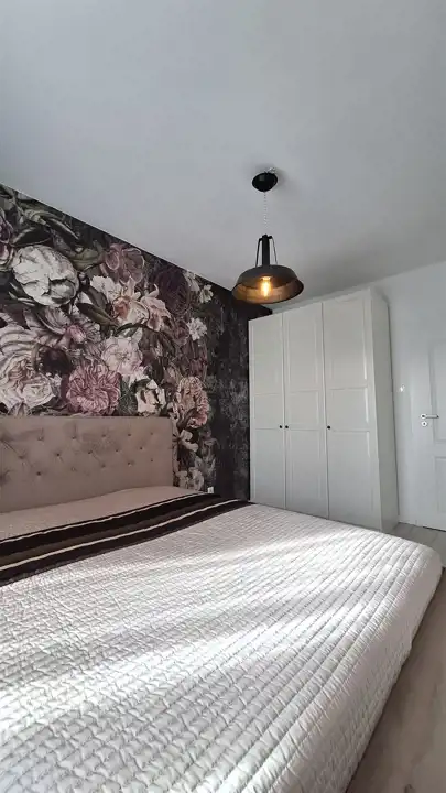 Pokój główny, jasny ustawny salon, dwie sypialnie, funkcjonalny aneks kuchenny z pełnym wyposażeniem. Szafy w zabudowie, wysoki standard. Na podłogach wysokiej jakości panele, płytki. Nowocześnie urządzona kuchnia. Sypialnia z dużą szafą, ustawna, funkcjonalna. Mieszkanie w bardzo ładnym stylu. Nowocześnie, ponadczasowo. Zamontowana klimatyzacja.