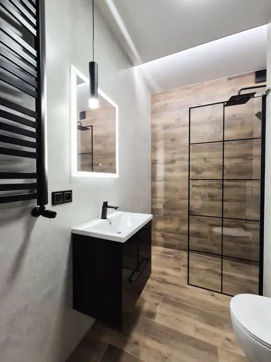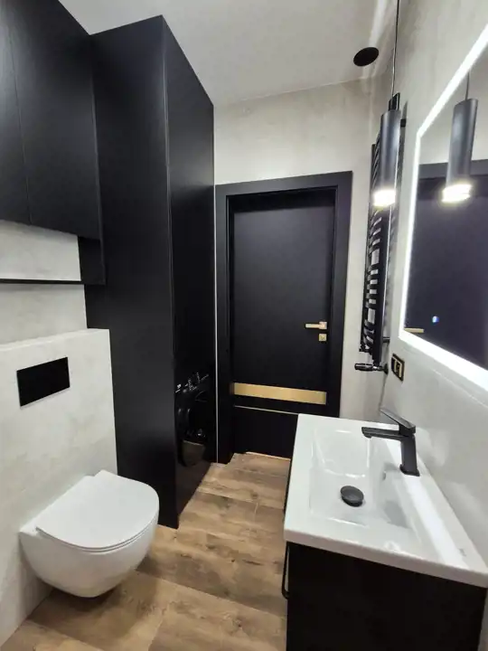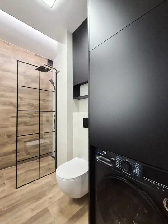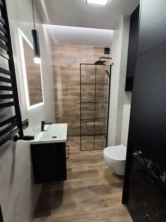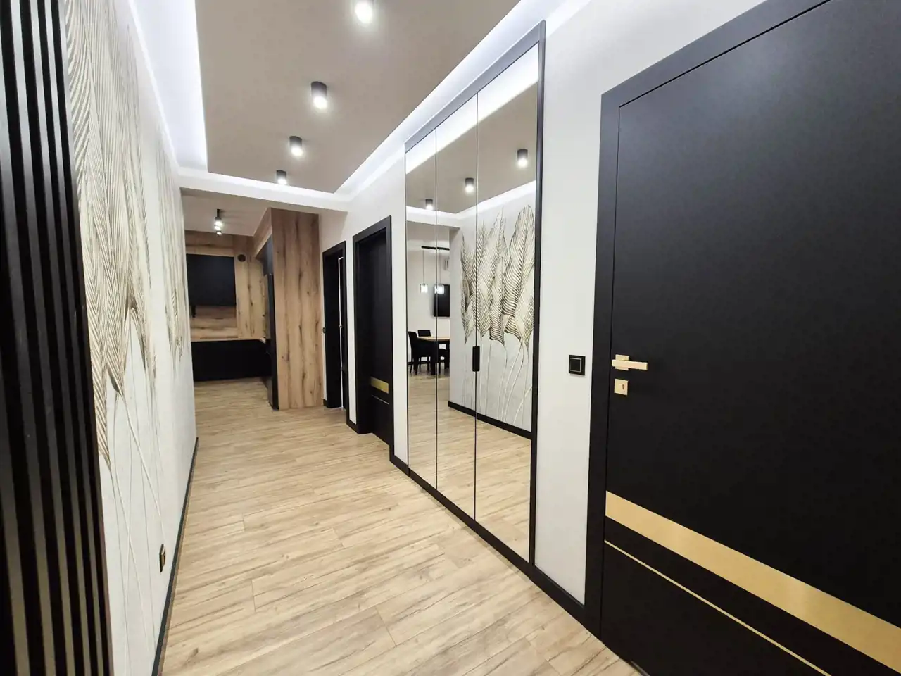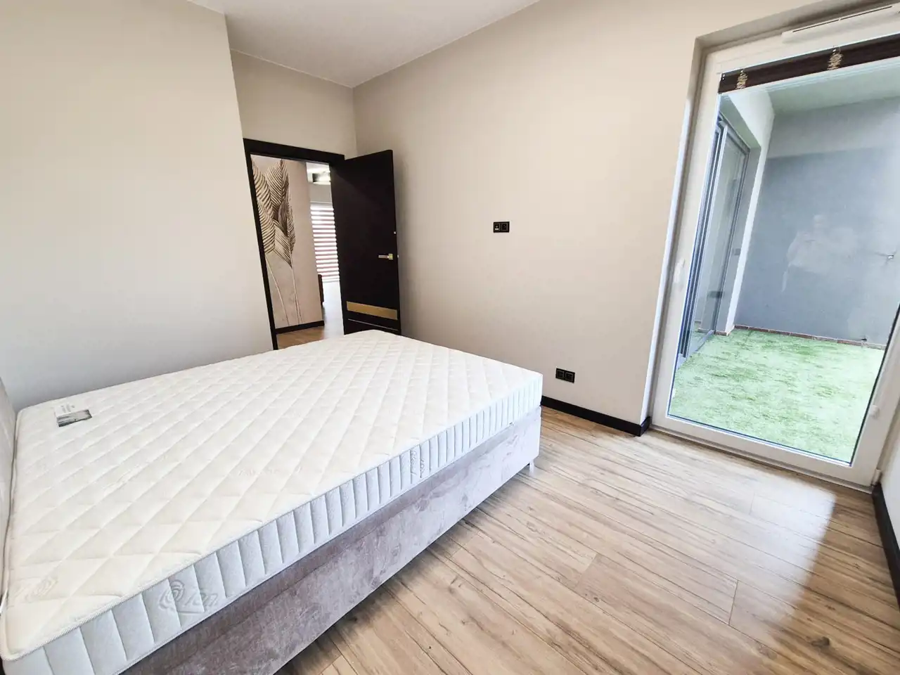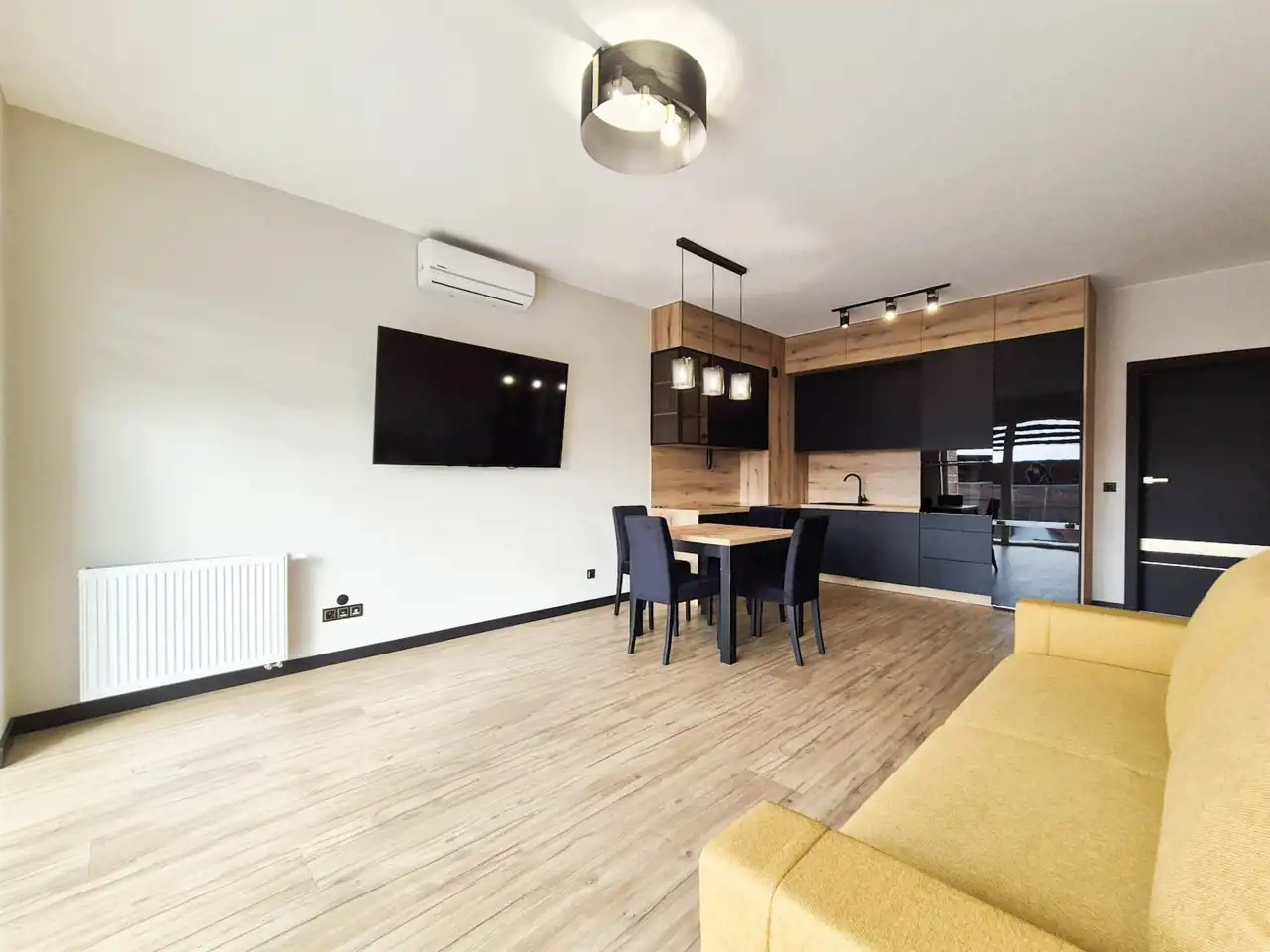 Mieszkanie świeżo oddane, wykończone przy użyciu materiałów wysokiej klasy. Umeblowane i wyposażone w sprzęty AGD i RTV. W salonie kpl. zabudowa kuchenna z AGD, stół z krzesłami oraz kanapa i fotele. W łazience kabina prysznic, pralka, kompakt WC, umywalka, zestaw mebli łazienkowych. W przedpokoju duża szafa w zabudowie. Drzwi antywłamaniowe. Na podłogach: terakota, w sypialni i pokoju panele. Okna PCV. Dodatkowo lokal posiada klimatyzację.