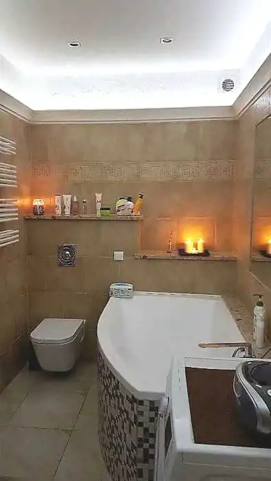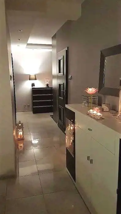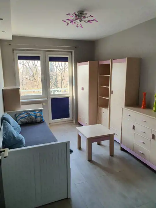 Mieszkanie po remoncie, wykończone przy użyciu materiałów wysokiej klasy. Umeblowane i wyposażone w sprzęty AGD. W salonie 2 podświetlane komody, stół z 6 krzesłami oraz sofy. W łazience duża wanna, prysznic, pralka SAMSUNG, kompakt WC, umywalka, zestaw mebli łazienkowych. W sypialni białe łózko 160/200, duża szafa przesuwna, pojemna komoda z trzema szufladami. Mniejsza sypialnia kompletnie umeblowana, sofa rozkładana. W przedpokoju duża szafa w zabudowie KOMANDOR + bardzo pojemna komoda z ośmioma samo-domykającymi się szufladami, również KOMANDOR. Drzwi antywłamaniowe. Na podłogach: gres z połyskiem, w sypialni i pokoju dziecięcym: panele. Okna PCV. Dodatkowo lokal posiada rolety zewnętrzne i wewnętrzne ANWIS.