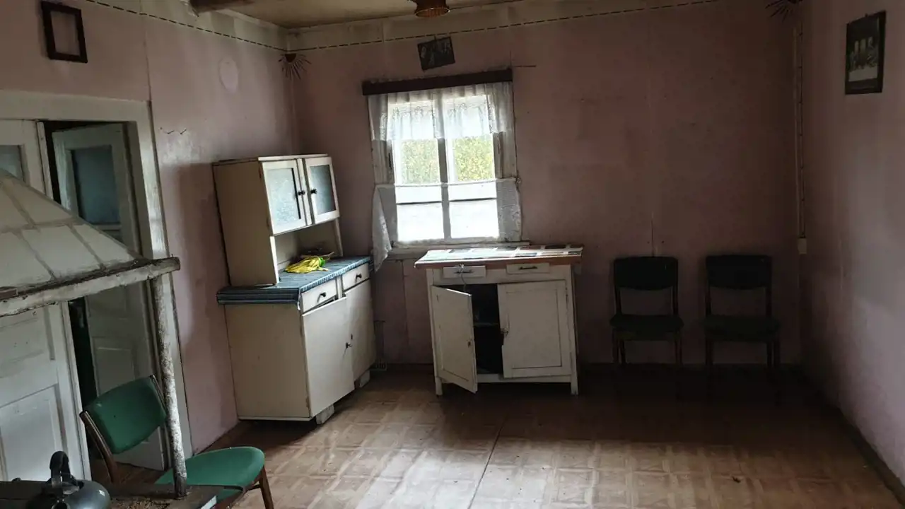 W układzie pomieszczeń domu znajduje się sień, przedsionek, spiżarka, kuchnia z przejściem do większego pokoju i sypialni. Pomieszczenia wymagają remontu, modernizacji.