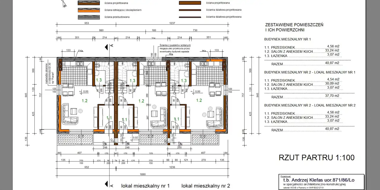 Do sprzedania 3 apartamenty II poziomowe o pow. 79,21 m2 (zewnętrzne) i jednego o pow. użytkowej 73,28 m2 (wewnętrzny) z tarasami. Nieruchomość wybudowana na działce o pow. ok. 407 m2. Lokale na parterze posiadają pokój dzienny z aneksem kuchennym o pow. przedsionek, Łazienka z wc. Na piętrze usytuowane są 2 pokoje sypialniane, korytarz oraz łazienka z wc. Nieruchomości wykończona w stanie deweloperskim, okna PCV 3 szybowe, rolety zewnętrzne- elektryczne, gaz ze wspólnej butli, rozprowadzony do każdego lokalu mieszkalnego, rozliczany wg własnego licznika, wg zużycia, wejście do budynku wyłożone kostką, media: woda, szambo oddzielne dla każdego lokalu, prąd, gaz z butli. Do każdego lokalu jedno miejsce postojowe. Do każdego lokalu przysługuje miejsce postojowe. Lokale zostaną oddane do użytkowania: czerwiec - sierpień 2025 r.