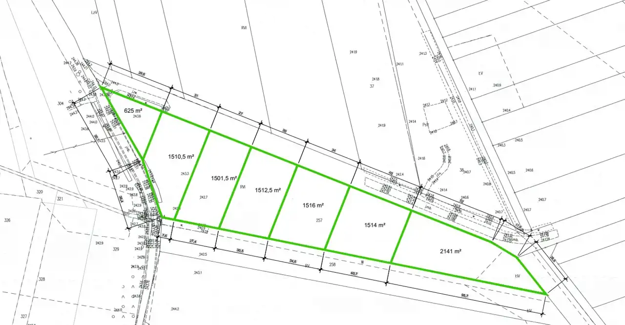 Istnieje możliwość zakupu działek sąsiadujących o powierzchniach: 625 m2, 1510 m2, 2141 m2.