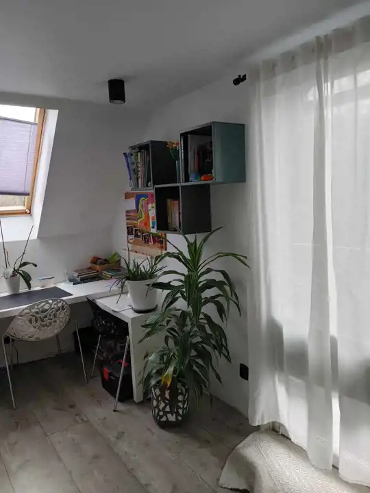 - druga sypialnia o pow 13 m2 ( podłoga panele ,ściany gładzie)z garderobą i wyjściem na balkon o pow 16 m2
