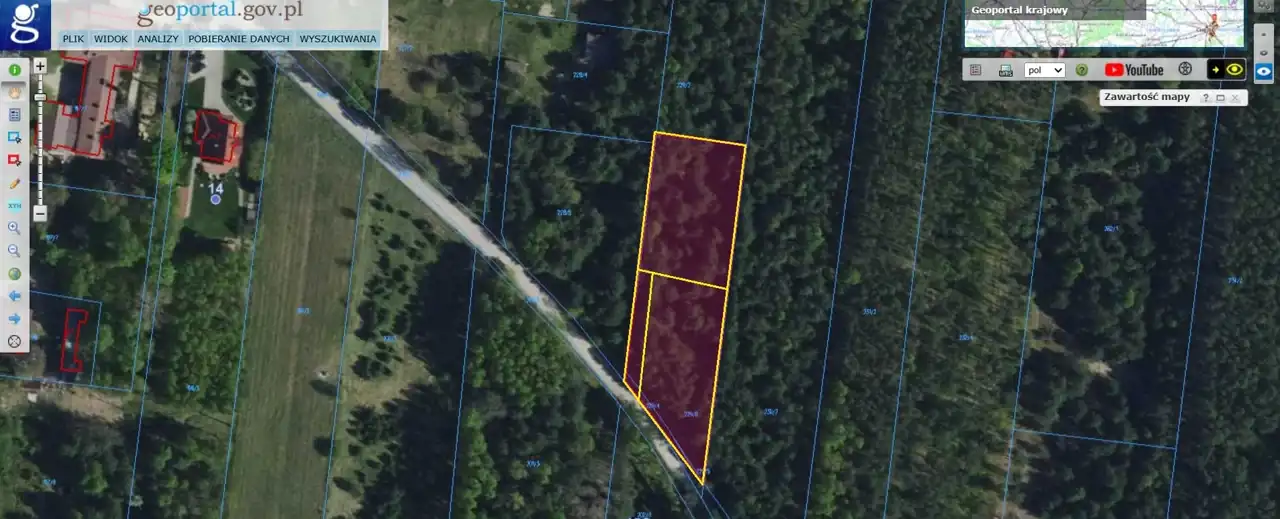 Działka jest w trakcie podziału, dzięki czemu przyszły właściciel ma elastyczne możliwości zakupu: