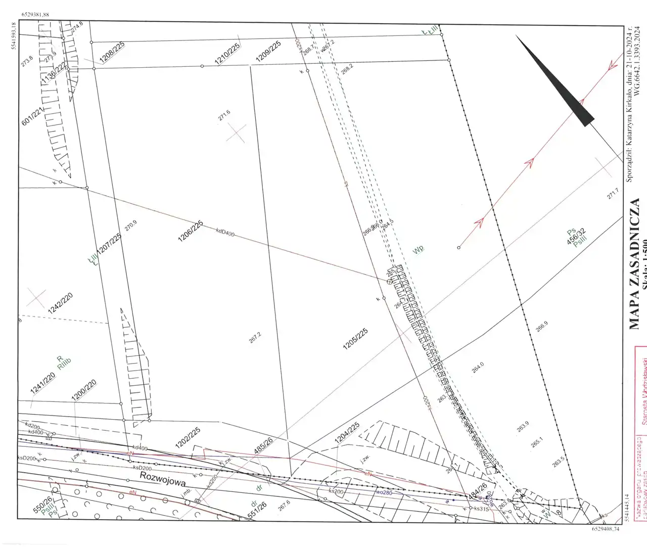 Cała nieruchomość o łącznej powierzchni 12129 m2 składa się z działek o numerach ewidencyjnych: 1205/225; 1206/225; 1207/225; 1209/225; 1208/225; 1211/225; 1212/225