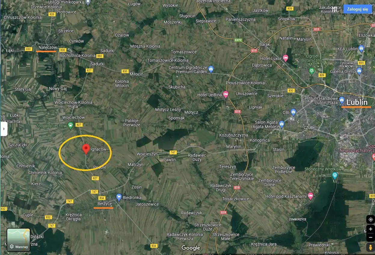 Oferujemy do sprzedaży atrakcyjnie położoną działkę w miejscowości Ignaców, w gminie Wojciechów. Działka o powierzchni 2000 m2 położona jest w pierwszym pasie zabudowy, posiada bezpośredni dostęp do drogi publicznej o nawierzchni asfaltowej. Teren nieruchomości jest płaski, granice działki są regularne, kształt zbliżony do prostokąta. Spokojna lokalizacja z dala od zgiełku miasta a jednocześnie niedaleko od Lublina ok. 18 km, do Nałęczowa ok. 10 km,zaś do Bełżyc ok. 5 km. W sąsiedztwie znajduje się luźna zabudowa jednorodzinna i zagrodowa. Zapraszamy zainteresowane osoby do zapoznania się z ofertą.
