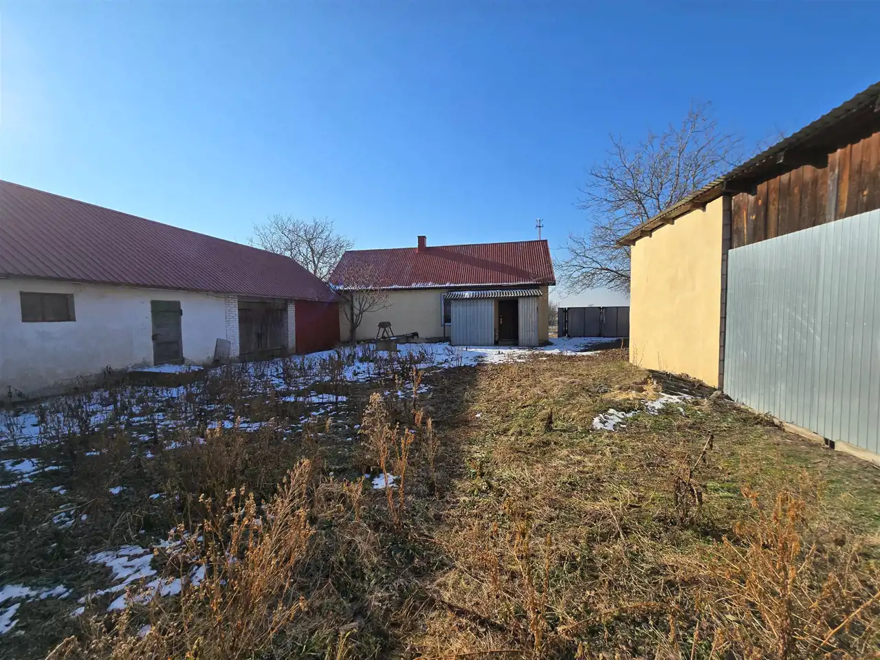 Na terenie posesji budynki gospodarcze murowane kryte blachą: duży garaż z kanałem na 2-3 pojazdy, letnia kuchnia z kuchnią kaflową, magazyn, obora i kurnik. Duża stodoła murowana z białej cegły kryta eternitem.