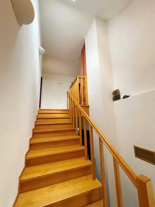 Na górną kondygnację prowadzą schody wyłożone drewnem dębowym.