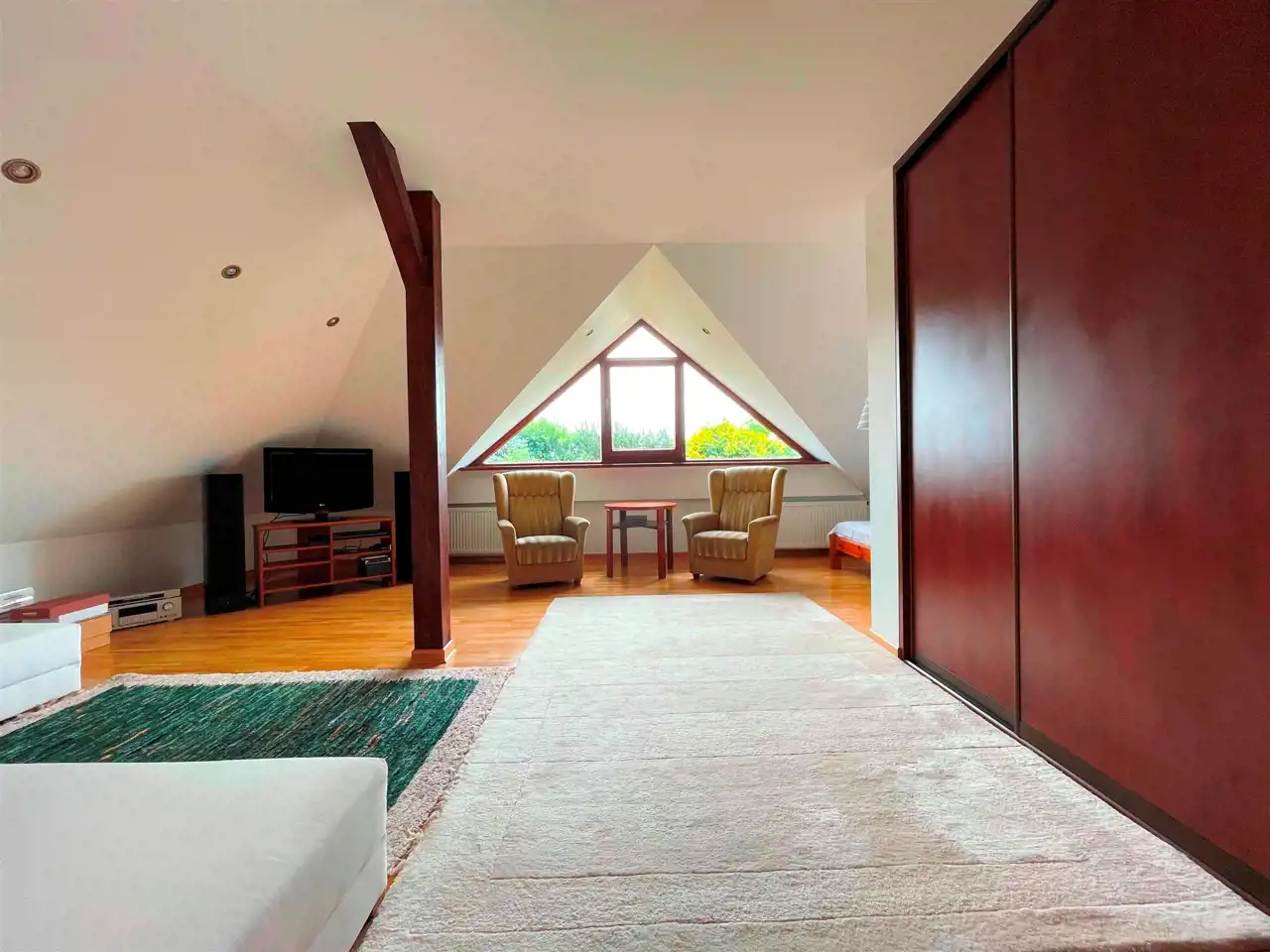Prezentujemy do sprzedaży wspaniały parterowy dom wolnostojący z poddaszem użytkowym o całkowitej powierzchni użytkowej ok. 260 m 2. Budynek położony jest na pięknie zagospodarowanej działce o powierzchni 3000 m2.
