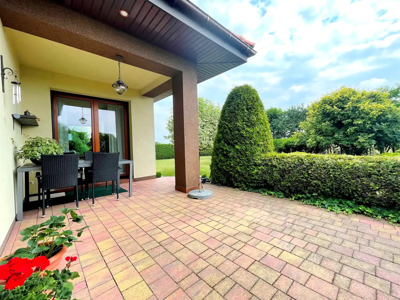 Do domu przylega duży taras z wyjściem z salonu oraz z gabinetu.