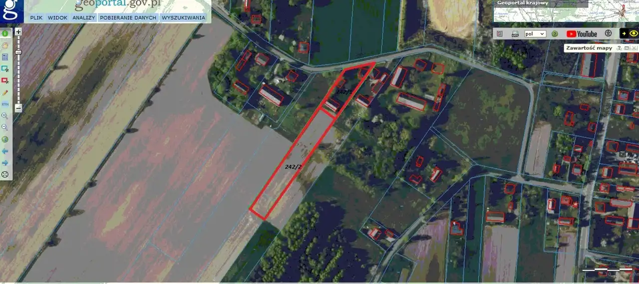 Nieruchomość składa się z działki 242/1 o powierzchni 1668 m2 przeznaczonej w Studium pod zabudowę mieszkaniową jednorodzinną lub siedliskową oraz działki rolnej 242/2 o powierzchni ok. 2996 m2 . Sprzedaż tylko w całości.