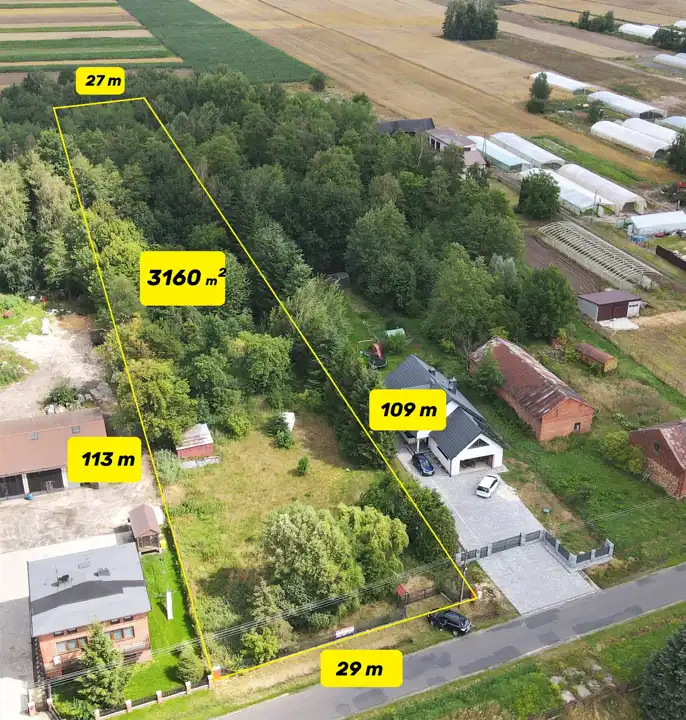 Działka o regularnym kształcie prostokąta o szerokości od frontu - 29 m.