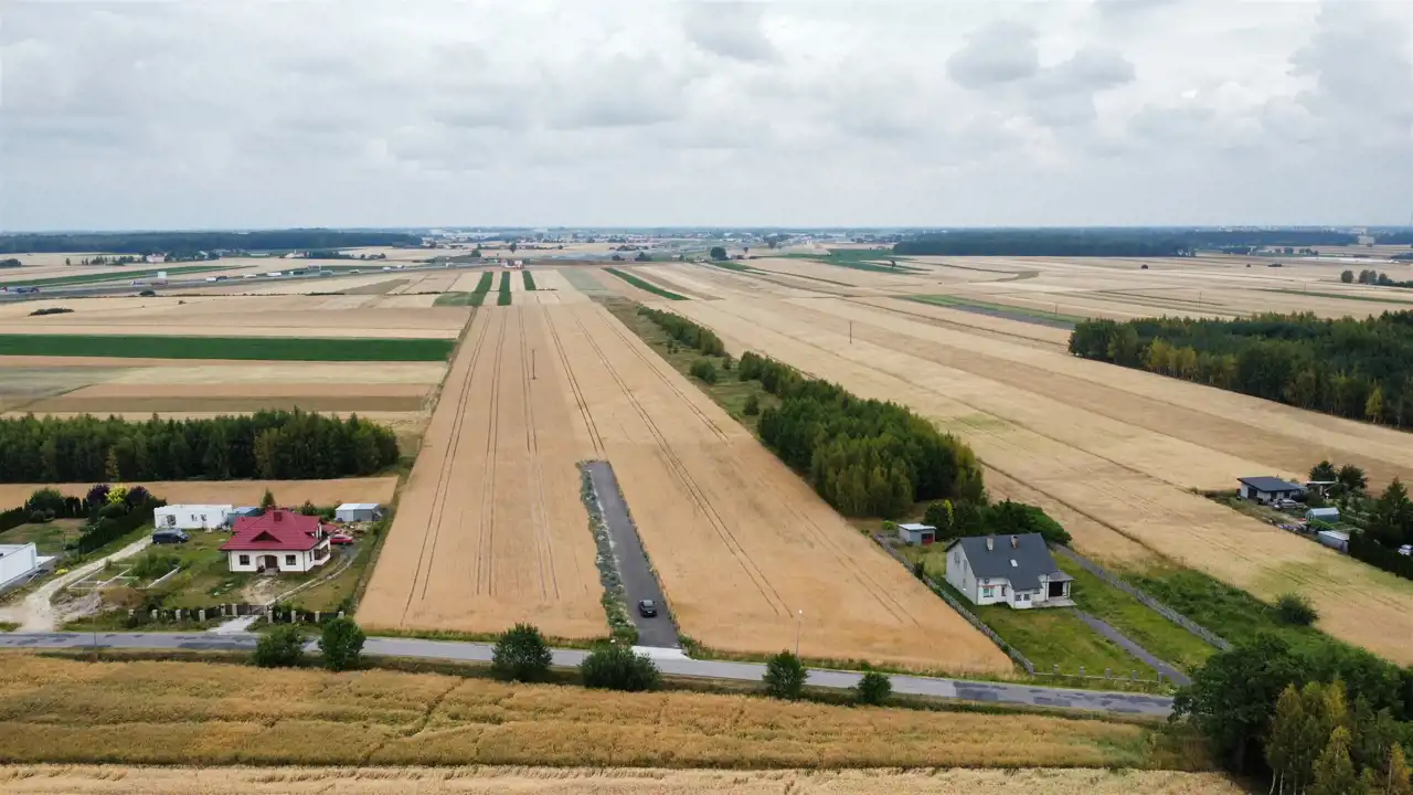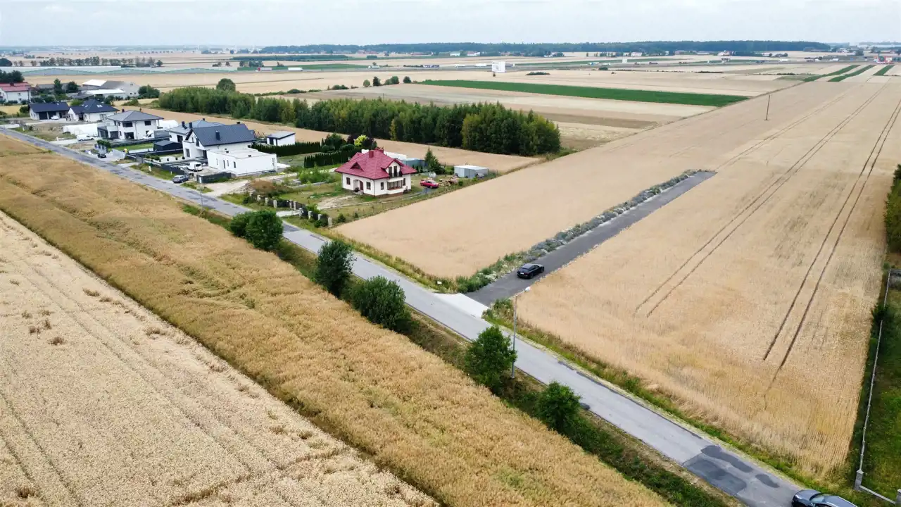 W sąsiedztwie zabudowania jednorodzinne oaz pola uprawne.