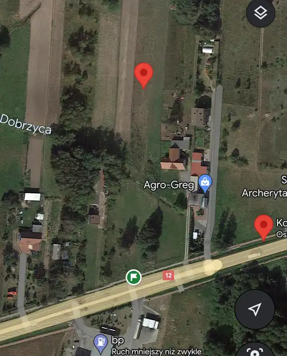 Szerokość pierwszej działki wynosi 15 m. Nieruchomość posiada w drodze gaz, wodę oraz prąd. Działka znajduje się naprzeciwko stacji paliw.