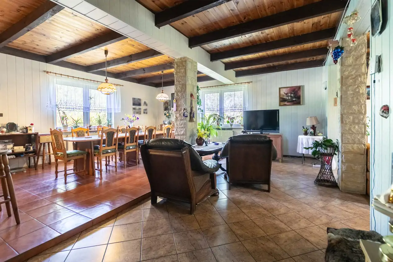 Na sprzedaż dom jednorodzinny położony w cichej okolicy w gminie Wolbórz, przy ul. Borek. W sąsiedztwie domy jednorodzinne i las, a jednocześnie blisko supermarket.