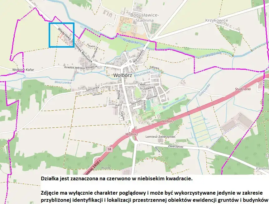 Działka jest w odległości 3km od pętli Wolbórz na S8 (Warszawa - Piotrków Trybunalski gdzie łączy się z autostradą A1)