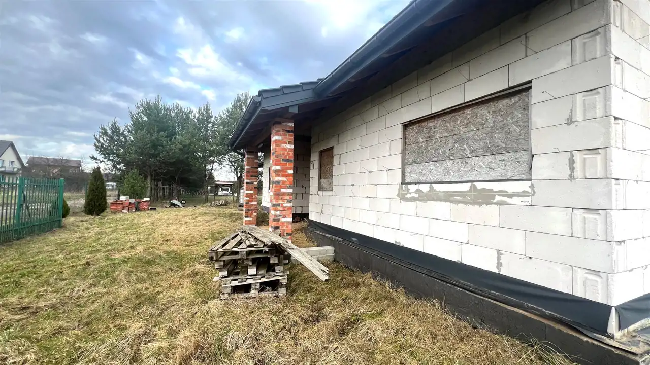 Oferujemy na sprzedaż dom w stanie surowym otwartym, bez wylewek nad Zalewem Sulejowskim w Swolszewicach Dużych. Według projektu dom ma mieć łączną powierzchnię 164,3m2, natomiast powierzchnię użytkową 133,46m2. Dach wykonany jest z dachówki ceramicznej. Nieruchomość nie jest otynkowana. Dom przygotowany jest do ścianek licowych. Nieruchomość jest parterowa, lecz przygotowana do zrobienia poddasza 25m2 użytkowego lub 60 m2 na całość poddasza. Nieruchomość według projektu składać ma się z salonu, 3 pokoi, łazienki, WC, przedpokoju, kuchni oraz pomieszczenia gospodarczego. Ściany są wykonane z materiału o wysokich parametrach cieplnych. Fundament wykonany jest z izolacją wewnętrzną, więc nie ma potrzeby robienia. Działka, na której dom jest usytuowany ma 940m2 o wymiarach 28 x 33m2, jest ogrodzona. Droga dojazdowa jest utwardzona. Nieruchomość położona jest w spokojnej okolicy, pośród zabudowy jednorodzinnych. Do Zalewu Sulejowskiego jest 300m w linii prostej.