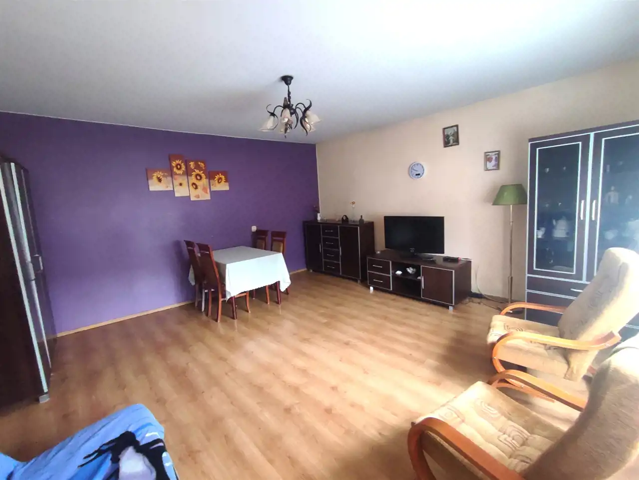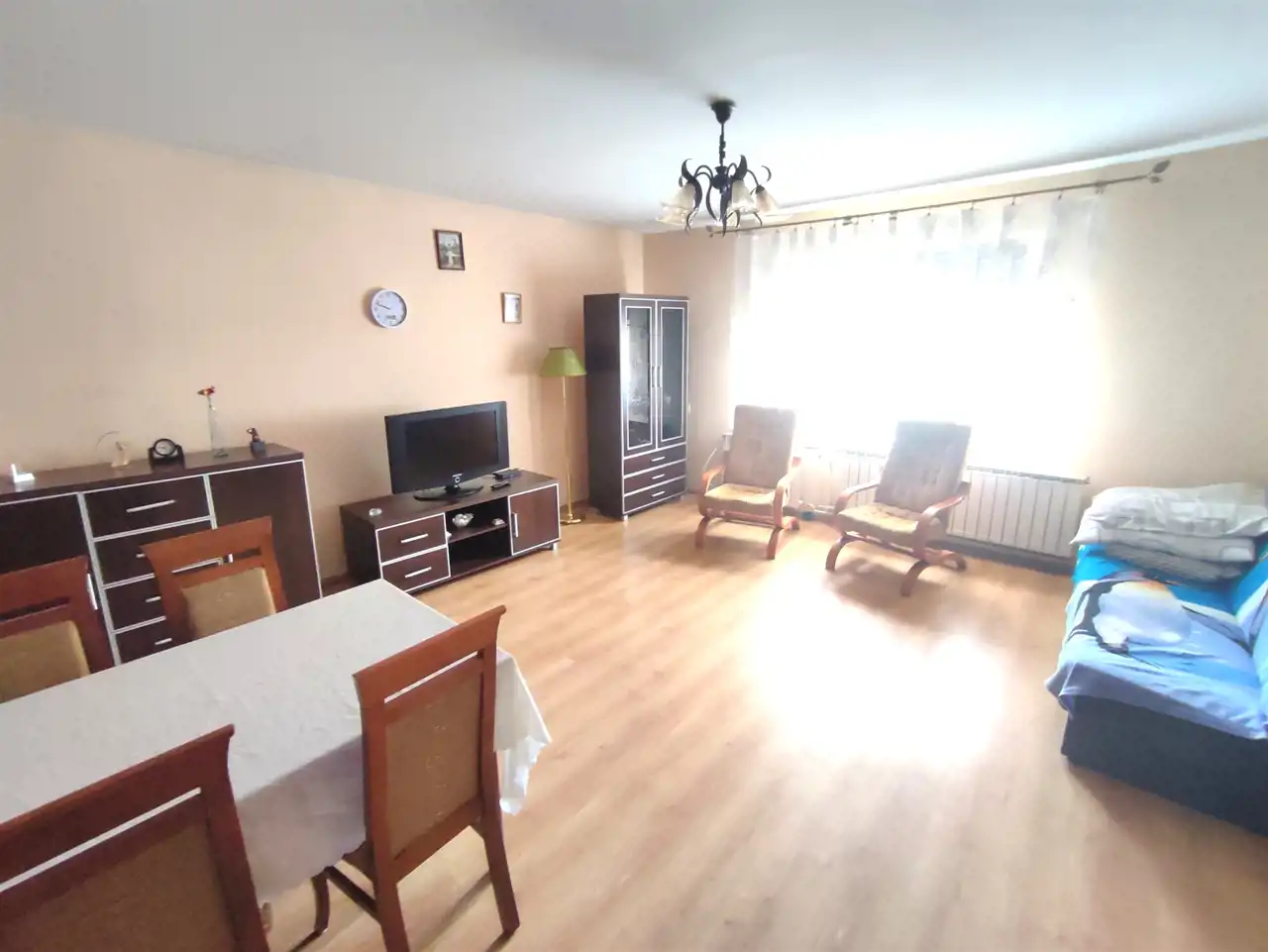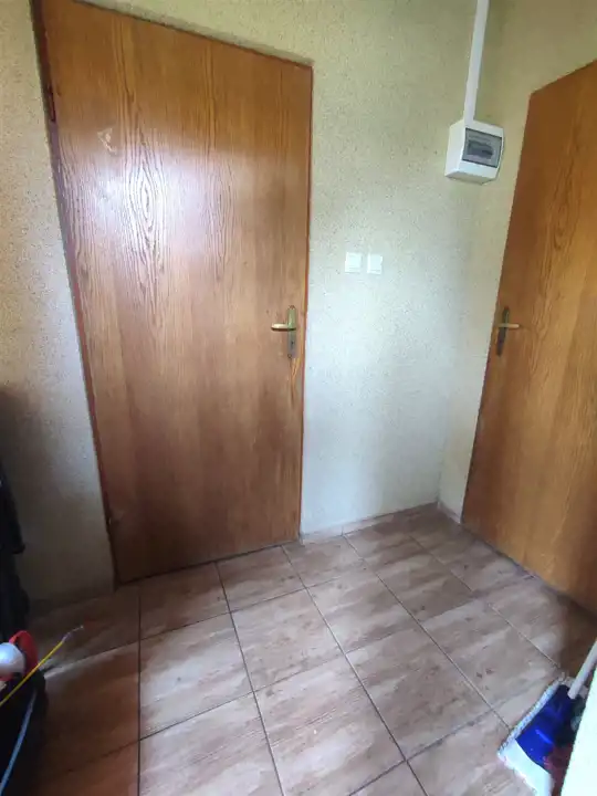 Okna PCV, na podłogach panele, na ścianach gładzie.
