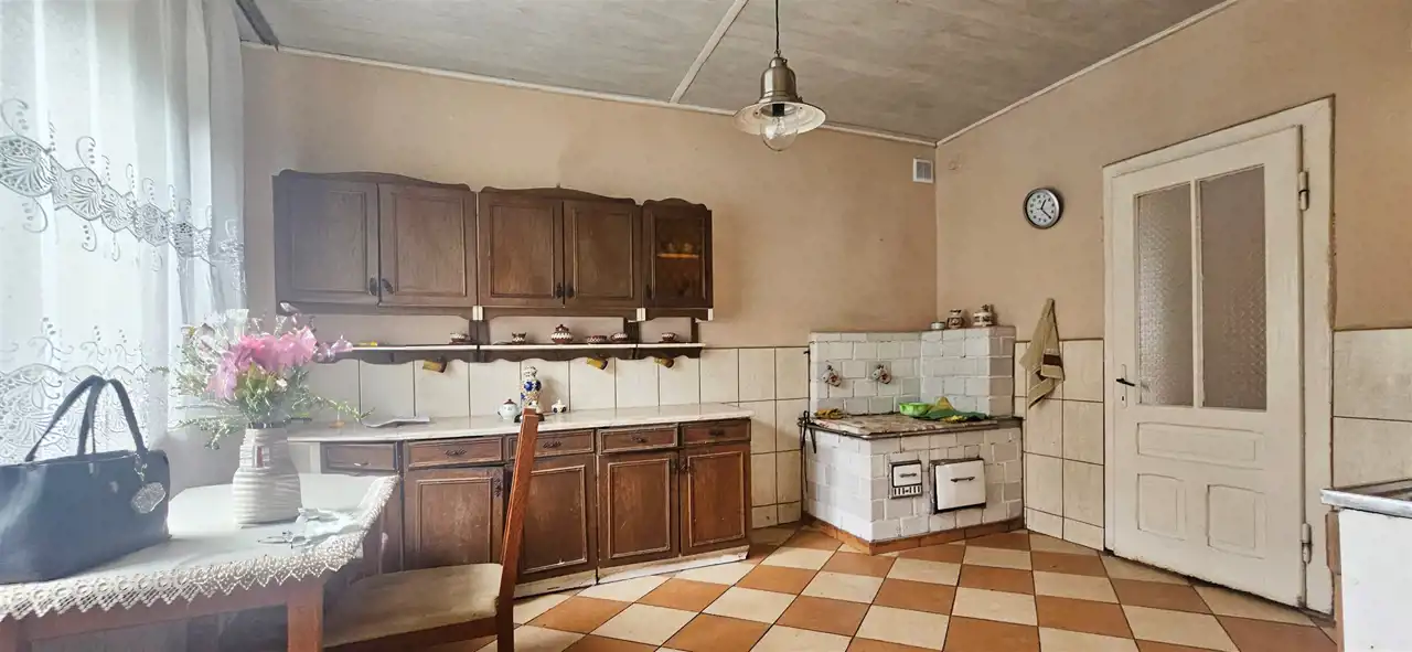 Dom o powierzchni użytkowej około 110 m² wyróżnia się trwałą konstrukcją z czerwonej cegły, co zapewnia długowieczność budynku. Posiada nową instalację centralnego ogrzewania oraz nowoczesny piec gazowy Vaillant z 2023 roku, co gwarantuje komfort cieplny przez cały rok. Budynek został częściowo ocieplony i wyposażony w nowe plastikowe okna, zwiększające jego energooszczędność.