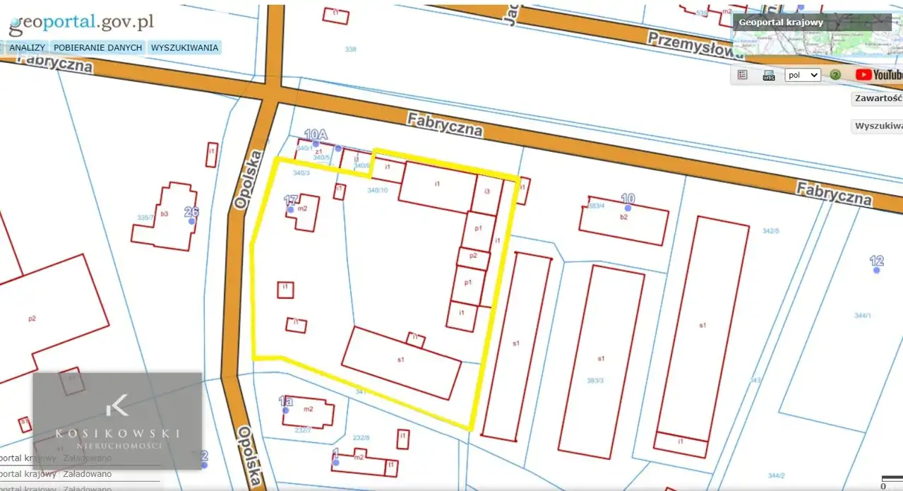 Nieruchomość obejmuje działki 340/3 oraz 340/10 o łącznej powierzchni 6974m2 zabudowana jest budynkami produkcyjnymi, magazynowymi i biurowymi. Teren niezagospodarowany, porośnięty drzewami samosiejkami i dziką roślinnością. Dojazd zarówno od strony ul. Fabrycznej i ul. Opolskiej.