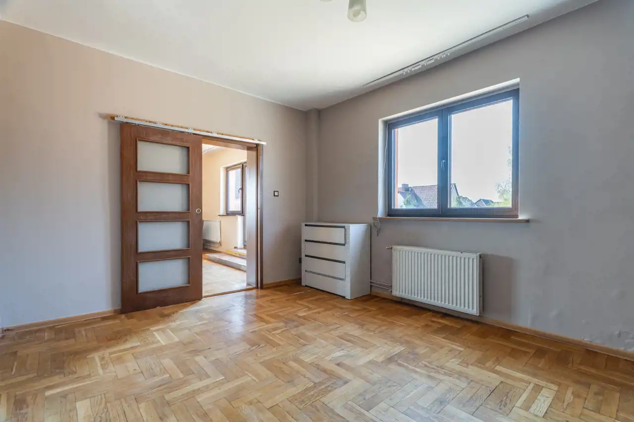 Dom stoi na działce 557m2 (użytkowanie wieczyste do 2077r.). Nieruchomość z ogromnym potencjałem.