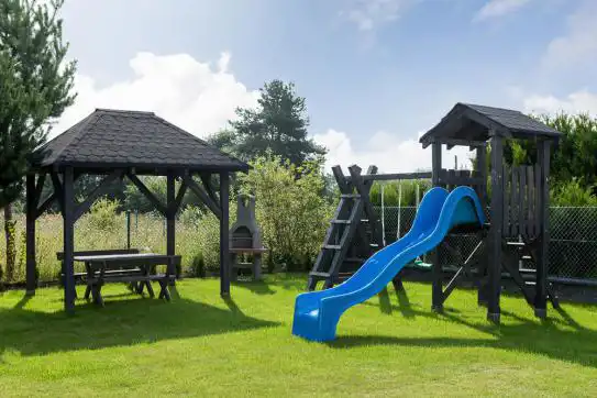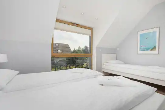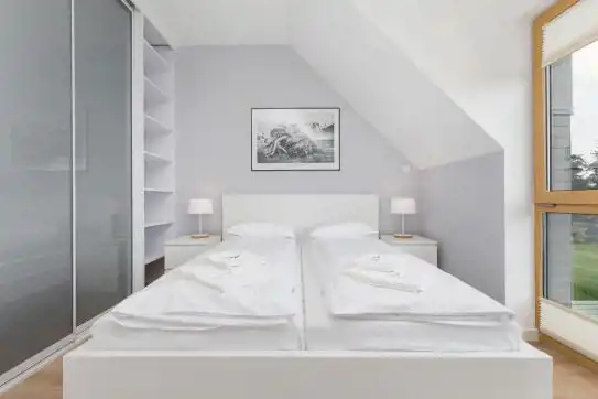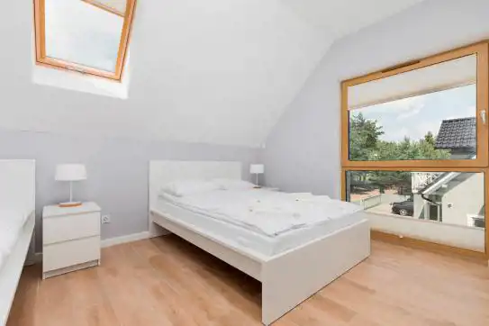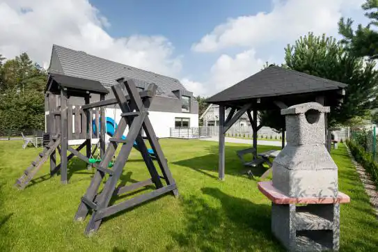 W pełni wyposażony dom z sauną i jacuzzi z możliwością zakwaterowania 19 osób składa się z trzech samodzielnych mieszkań A, B i C stanowiących łącznie 5 sypialni, 3 salony z aneksami kuchennymi oraz 5 łazienek. Na posesji znajduje się również parking, plac zabaw oraz grill.