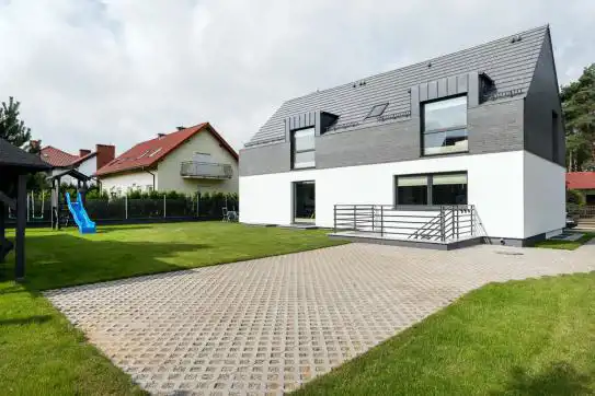 Dom typu bliźniak o pow. 275 m2 położony na działce o pow. 715 m2 podzielony na trzy samowystarczalne mieszkania.