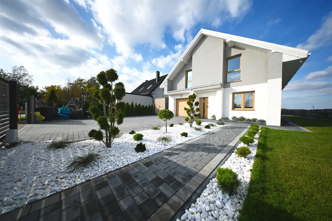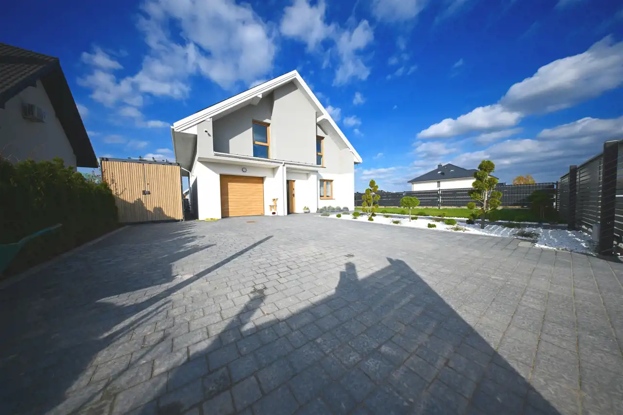 Kostka brukowa oraz opaska na podjeździe.