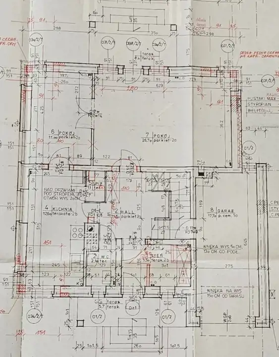 - Material konstrukcyjny cegła, pustak