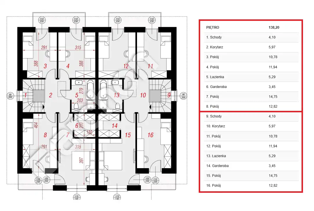 Zbudowany z wysokiej jakości materiałów: beton komórkowy 24 cm + 20 cm styropianu grafitowego,