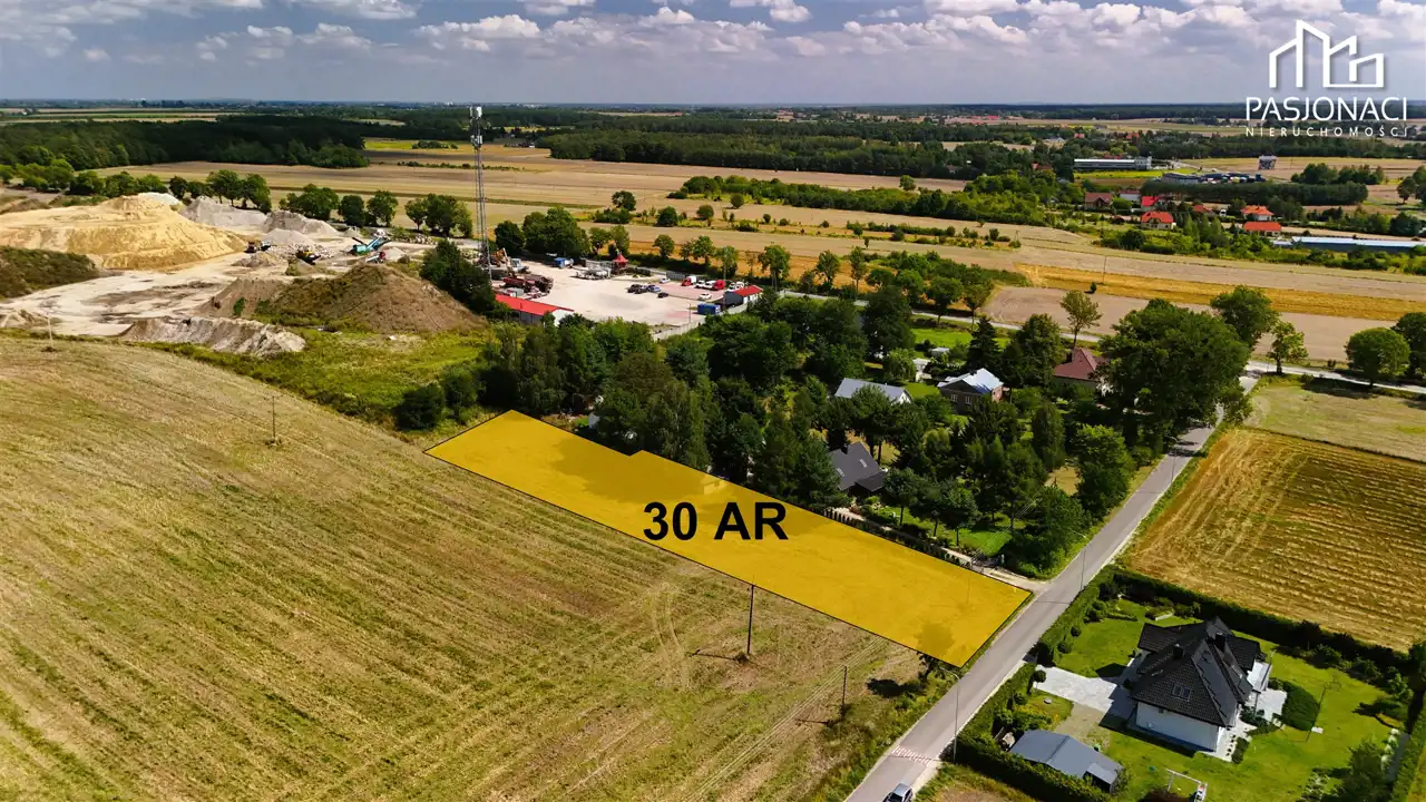 Działka zlokalizowana jest okolicy, która oferuje szybki dostęp do wszystkich niezbędnych usług codziennej potrzeby. W sąsiedztwie przeważa zabudowa jednorodzinna i pola uprawne. Teren jest delikatnie nachylony z nieznacznym spadkiem w kierunku zachodnim, co stanowi atut na przykład w projektowaniu ogrodu.