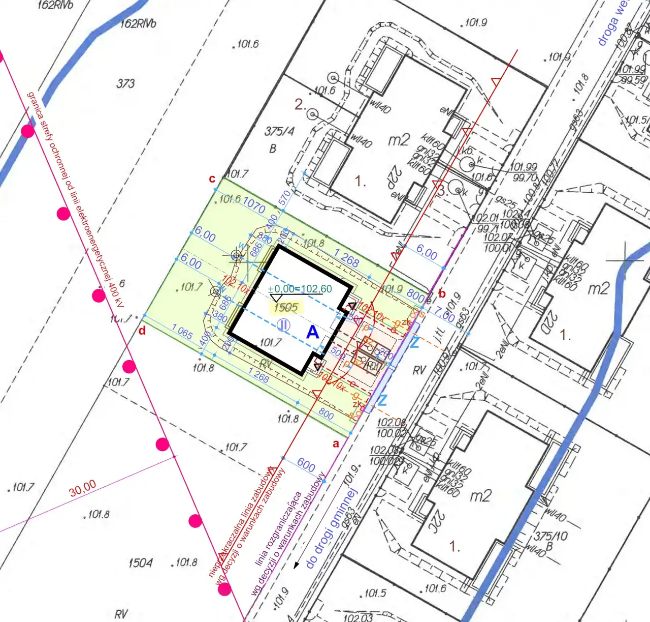 - Działka Zagospodarowana, płaska, prostokąt