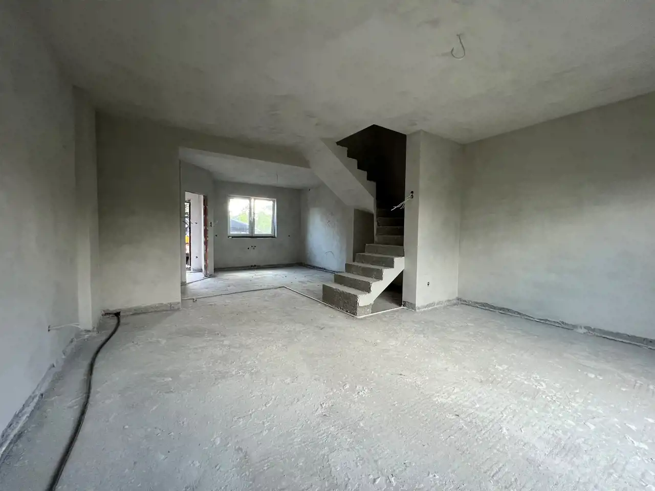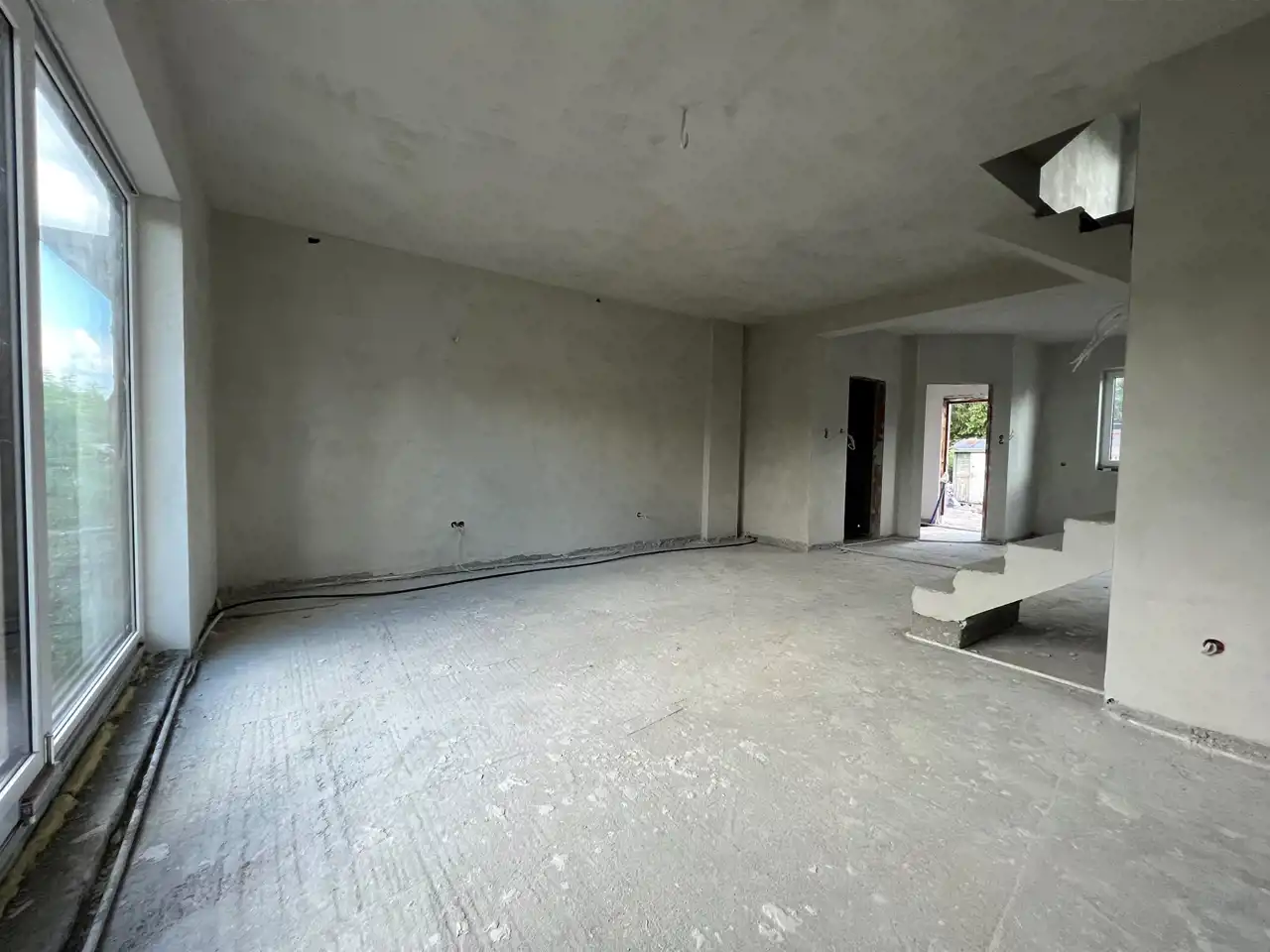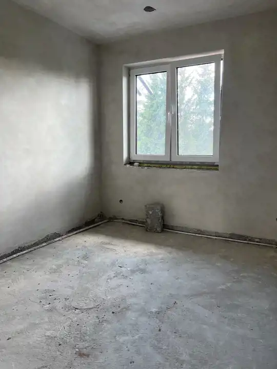 Stan deweloperski, tynki wewnętrzne cementowo-wapienne, zewnętrzne ocieplenie budynku 20 cm. Piec gazowy dwufunkcyjny z zamkniętą komorą spalania, ogrzewanie podłogowe na całym parterze oraz łazienka na piętrze, plus grzejniki w pokojach. Stolarka okienna i balkonowa z PCV. Drzwi wejściowe metalowe, docieplone. Wszystkie media miejskie (gaz, woda, kanalizacja, prąd) , oddzielne licznik do każdego lokalu . Teren ogrodzony, brama na pilota. Droga wewnętrzna, miejsca postojowe, dojścia do lokali - wyłożone kostką. Instalacja TV, alarmowa, domofon. W salonie możliwość zainstalowania kominka. Planowany termin zakończenia budowy - koniec kwietnia 2027 roku.