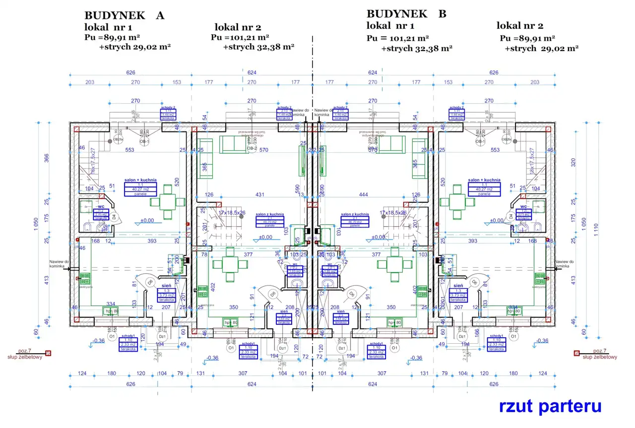 Do każdego segmentu dwa miejsca postojowe. Do każdego lokalu wydzielony ogródek.
