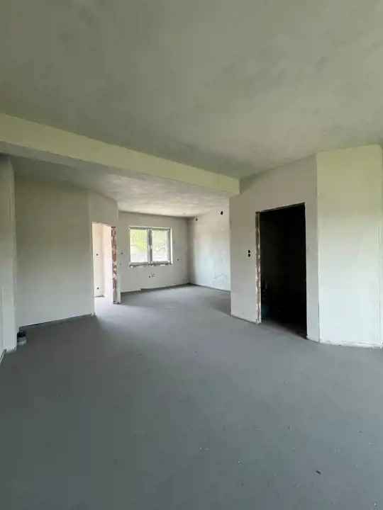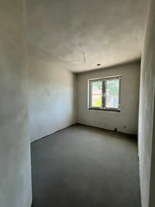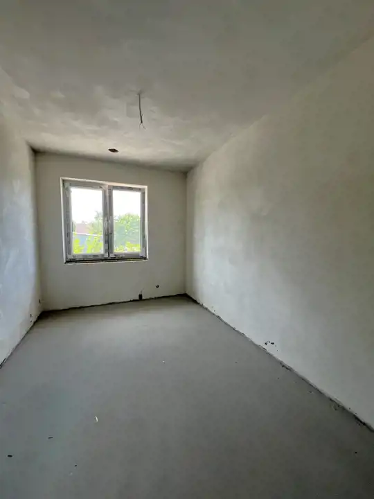 Stan deweloperski, tynki wewnętrzne cementowo-wapienne, zewnętrzne ocieplenie budynku 20 cm. Piec gazowy dwufunkcyjny z zamkniętą komorą spalania, ogrzewanie podłogowe na całym parterze oraz łazienka na piętrze, plus grzejniki w pokojach. Stolarka okienna i balkonowa z PCV. Drzwi wejściowe metalowe, docieplone. Wszystkie media miejskie (gaz, woda, kanalizacja, prąd) , oddzielne licznik do każdego lokalu . Teren ogrodzony, brama na pilota. Droga wewnętrzna, miejsca postojowe, dojścia do lokali - wyłożone kostką. Instalacja TV, alarmowa, domofon. W salonie możliwość zainstalowania kominka.