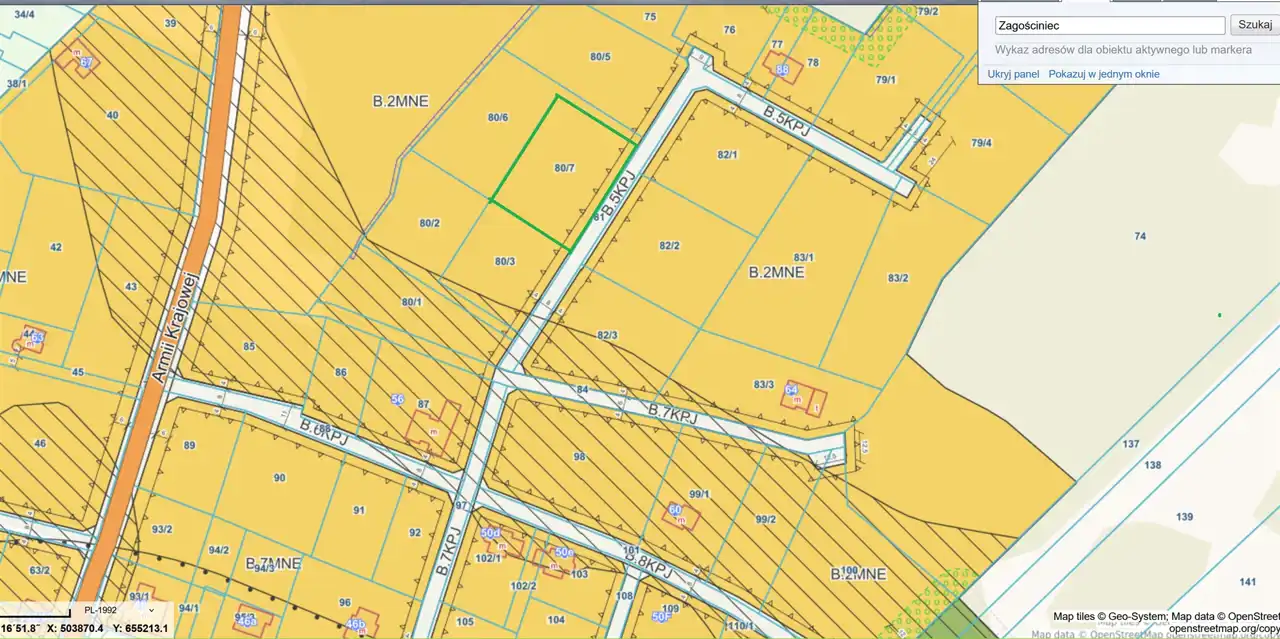 b) dla terenu B.2MNE z dróg B.2KDL (ul. Armii Krajowej), B.5KPJ, B.6KPJ, B.7KPJ i B.8KPJ,