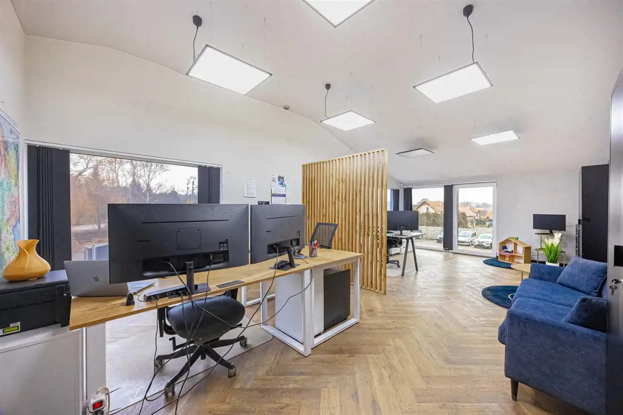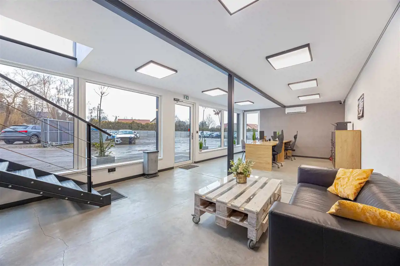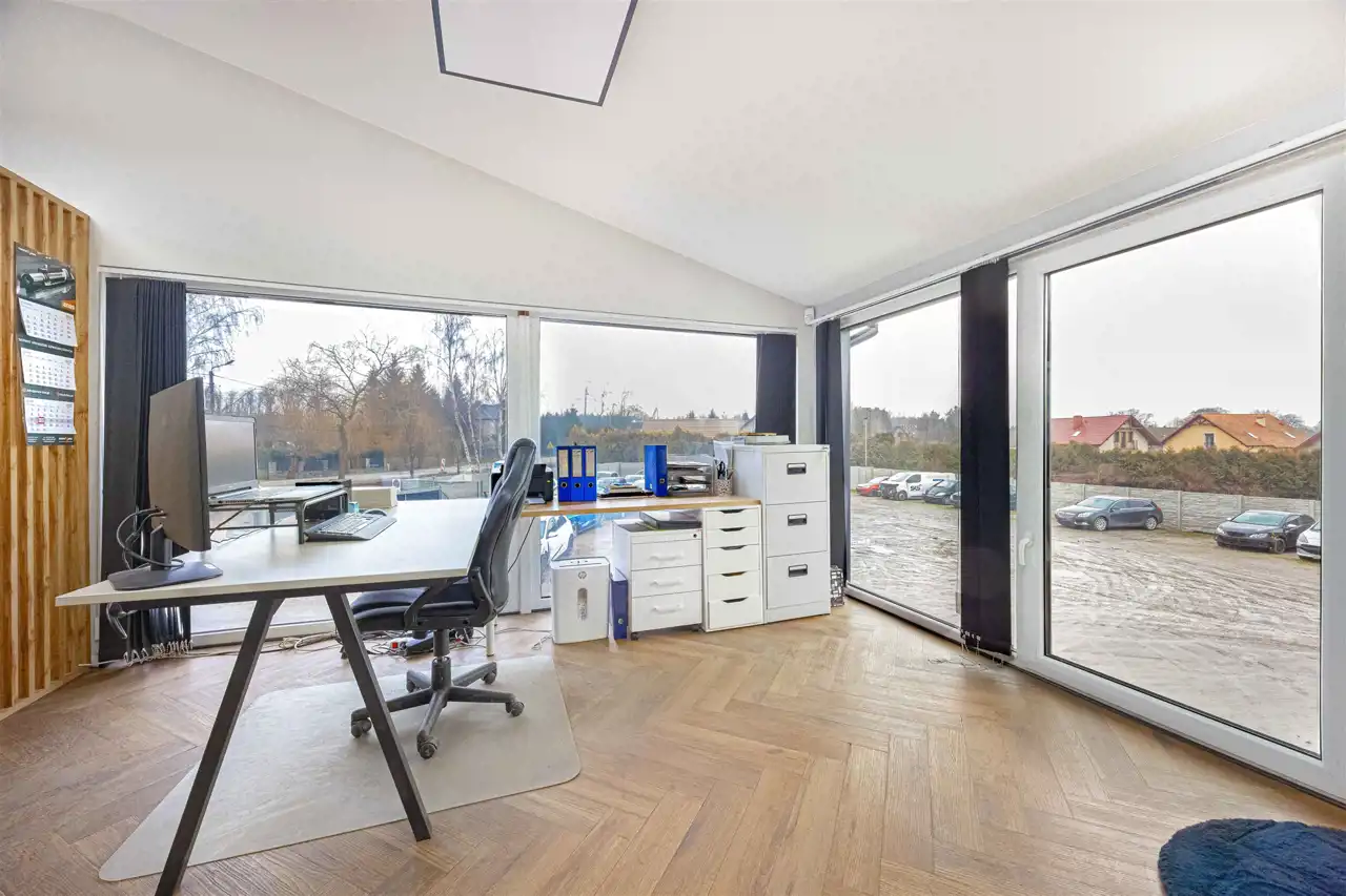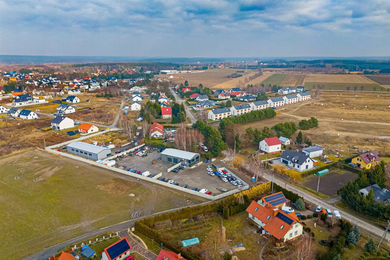 Działka gruntu o kształcie trapezu o powierzchni 3545 m2, w pełni ogrodzona, z bramą wjazdową zabudowana wolnostojącym budynkiem biurowym wraz z halą. Budynek o powierzchni 156 m2 pełni obecnie funkcję biurowo-usługową. Budynek został wybudowany w roku, jest w bardzo dobrym stanie technicznym oraz wizualnym.