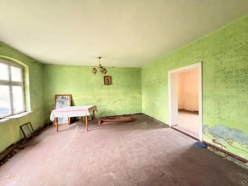 Dom poniemiecki wolnostojący z zabudowaniami o powierzchni użytkowej ok. 100 m2, zlokalizowany w m. Stary Wołów.